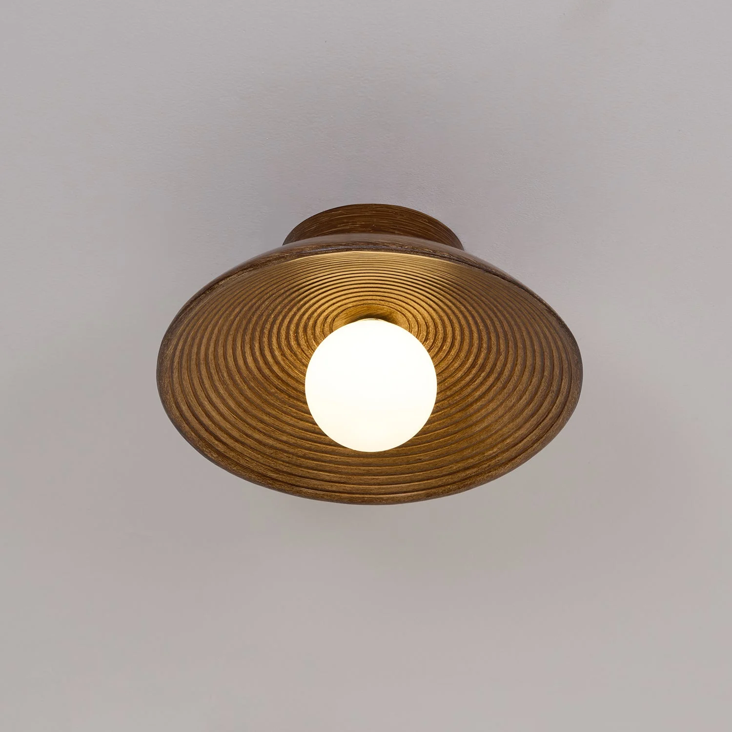 The Nubei Ceiling Light a masterpiece in wabi-sabi philosophy, marries the organic complexity of high-polymer material with the sleek simplicity of glass. Its richly textured surface, reminiscent of natural wood grain, adds depth and character to any space.