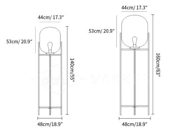 Dia 48cm x H 160cm Lamp body packing size: L 132cm x W 36cm x H 36cm