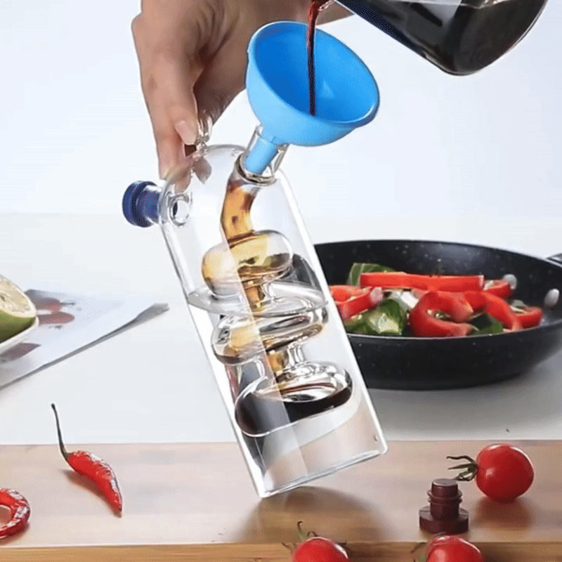 🍶 Double design for more flexibility: Two separate compartments allow oil and vinegar to be stored in a single bottle.