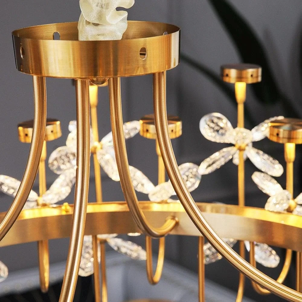 Stunning floral-inspired crystal chandelier for residential and commercial applications. Truly a unique and beautiful conversation piece. Available in both one or two-tier variants.