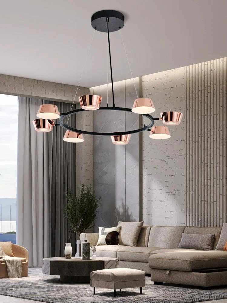 The OLO chandelier consists of continuous circular lines with a simple design but is carefully crafted by Seed Design, a leading designer lighting brand in East Asia. The circular shape is influenced by the traditional round table, echoing the expression of “reunion”.