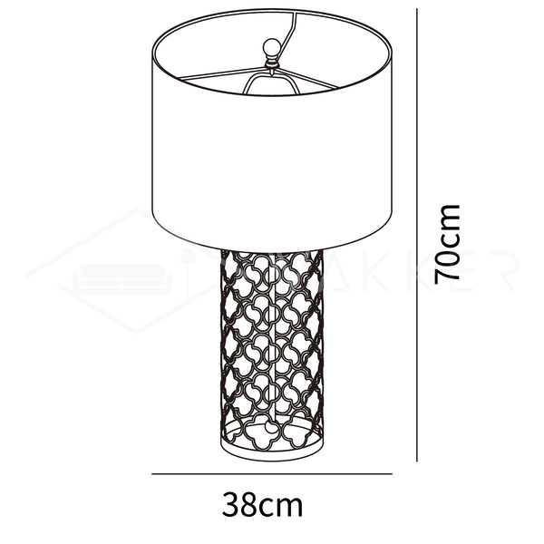 Lamp featuring an openwork gold metal base and a satin-finish lampshade. Light bulb not included.
