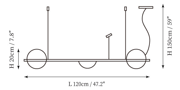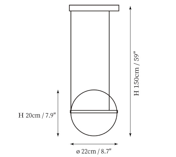 59″ Adjustable hanging height cable. Can be extended upon request.