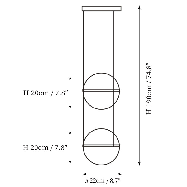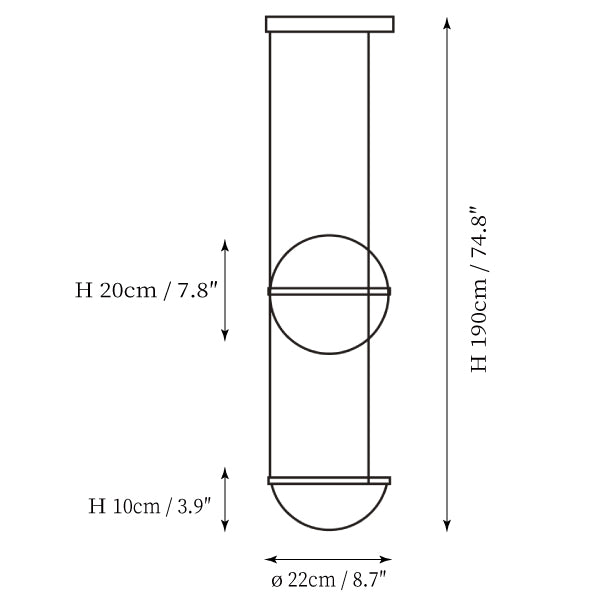 Model B Size: Dia 22cm x H 190cm / ∅ 8.7″ x H 74.8″ (Power: 2*6W)