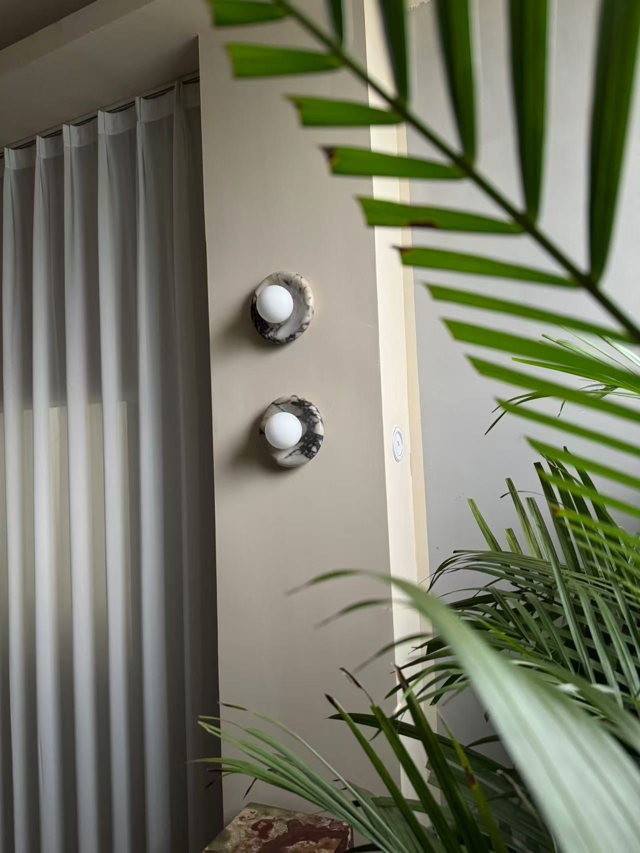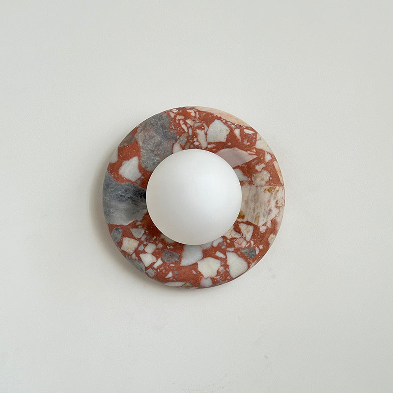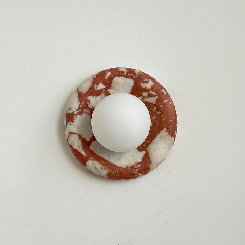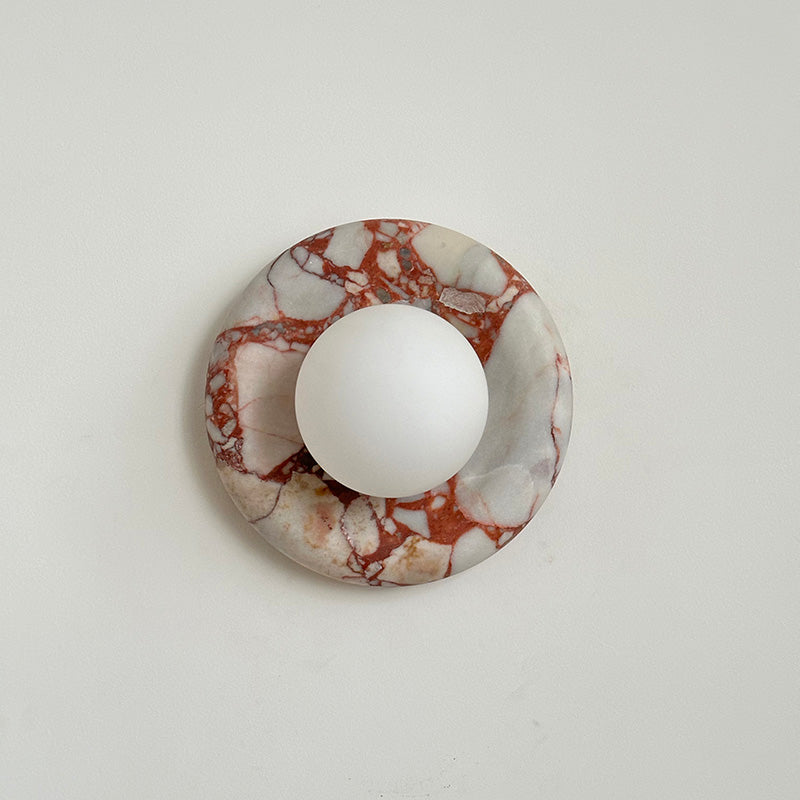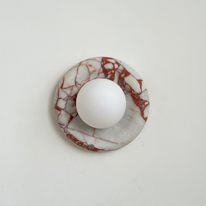The Orli Wall Lamp masterfully merges contemporary style with classic elegance. Featuring a perfectly round form and a central glass globe set against a curved marbler backplate, it adds a sophisticated touch to any space. Ideal for enhancing the ambiance in hallways, living rooms, or bedrooms, this wall light illuminates with a soft, layered glow.