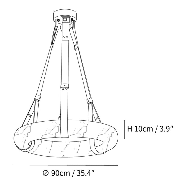 The Oslo Pendant Light B features a glowing alabaster ring, creating a halo effect that beautifully illuminates a room. Hung from sturdy fasteners, this fixture strikes a balance between strength and weightlessness, providing a solid yet airy appearance. As a standalone statement piece, it adds a touch of sophistication, and when grouped together in a row, it amplifies its impact. Optional hanging cables also available for purchase.