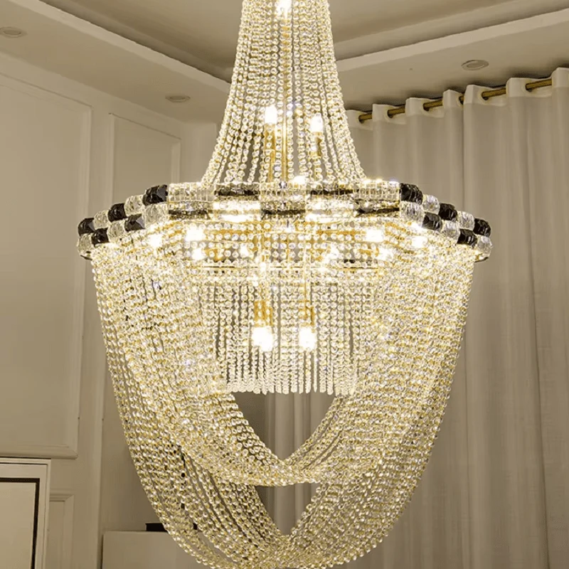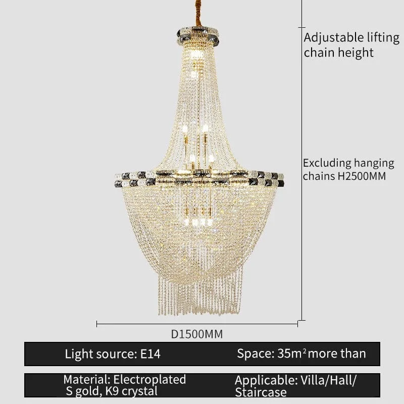 Introducing the Othom – European Duplex Gold Design Crystal Chandelier, a statement of opulence for luxury interiors. Featuring a stunning duplex design with over 20 light sources, this chandelier bathes your space in a luminous glow ranging from 2000 to 82000 lumens. Crafted from high-quality crystal and finished in elegant gold, it effortlessly elevates any grand living room, foyer, or dining space. With a lighting area of 15-30 square meters, it comes pre-assembled for easy installation and is compatible with E14 bulbs (included). Certified to CCC, CE, and UL standards, it offers safe, sophisticated lighting for the discerning homeowner. Ships in just 6-8 days.