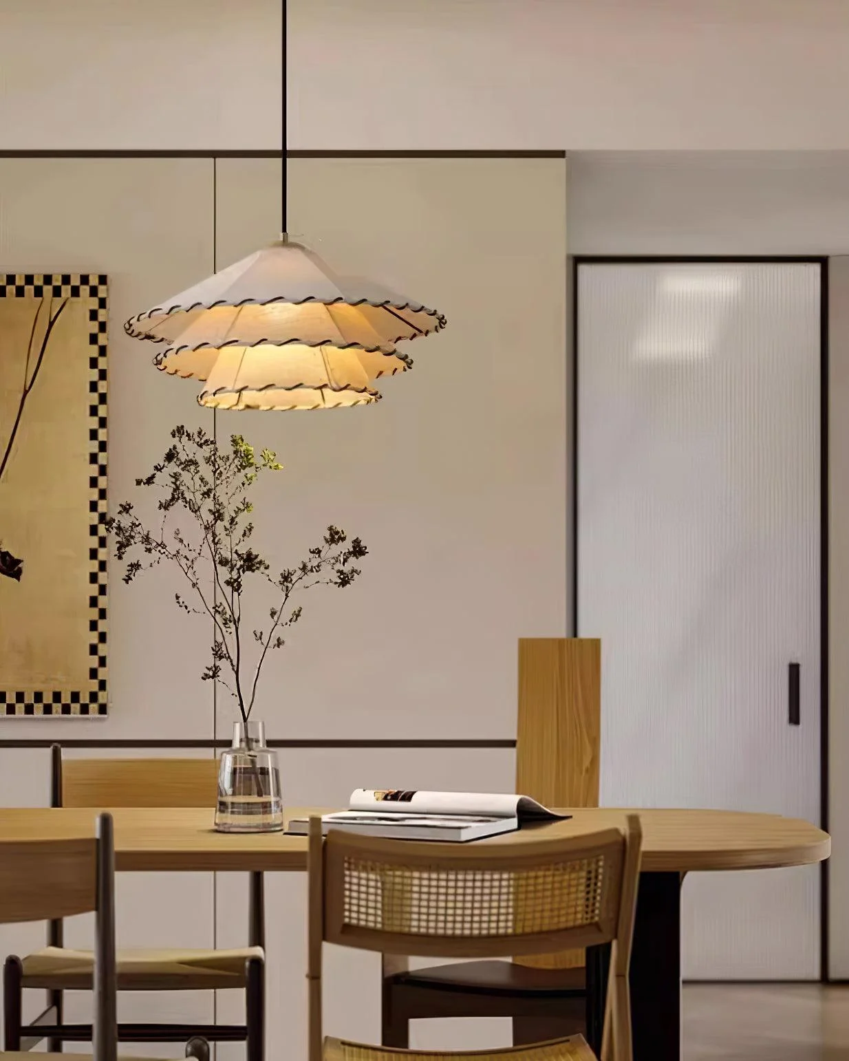 This handmade natural-fabric pendant light gives your living area a delicate, minimalist look and a warm, inviting glow. The Japanese-inspired design helps create a peaceful ambiance in your home. Add the perfect finishing touch to your decor.