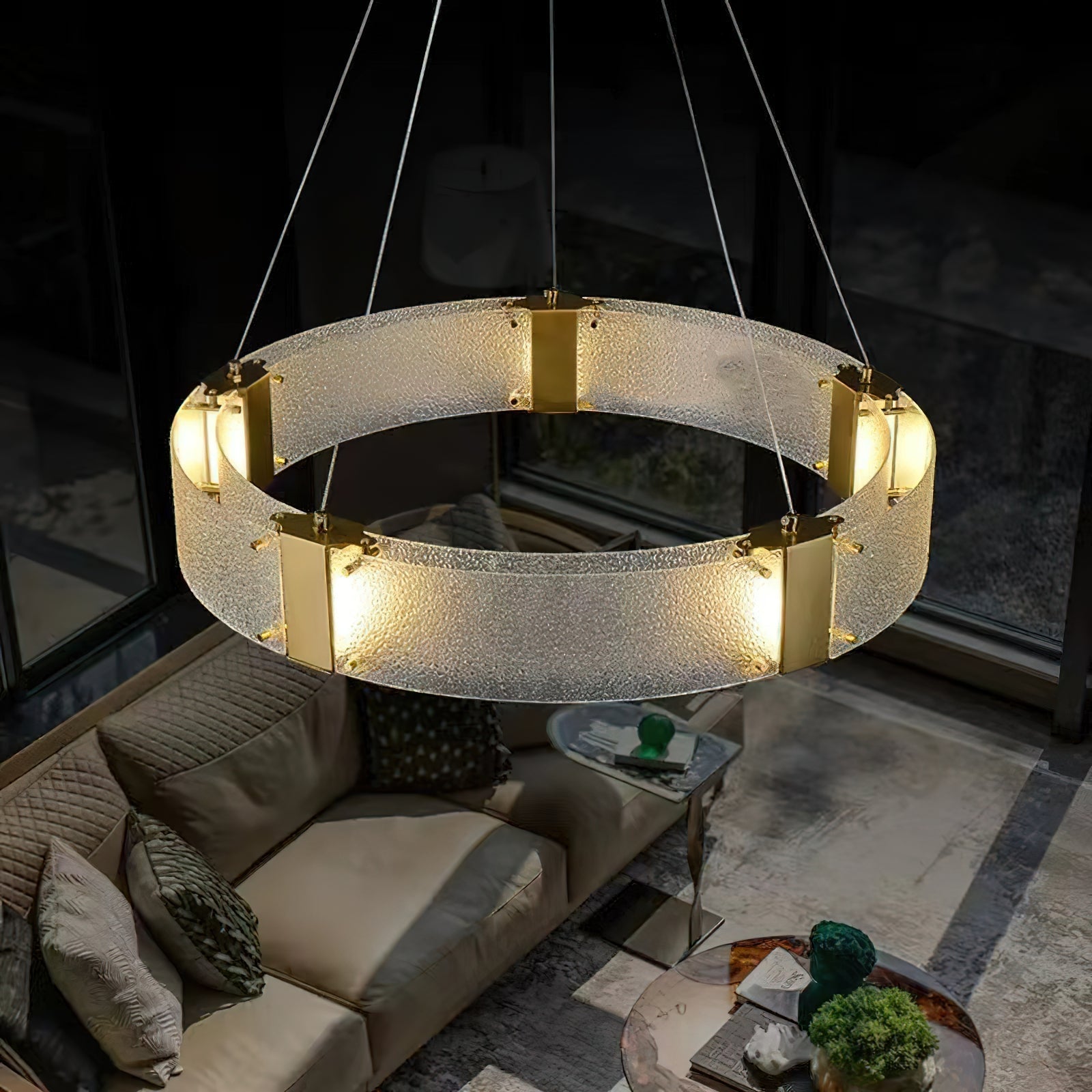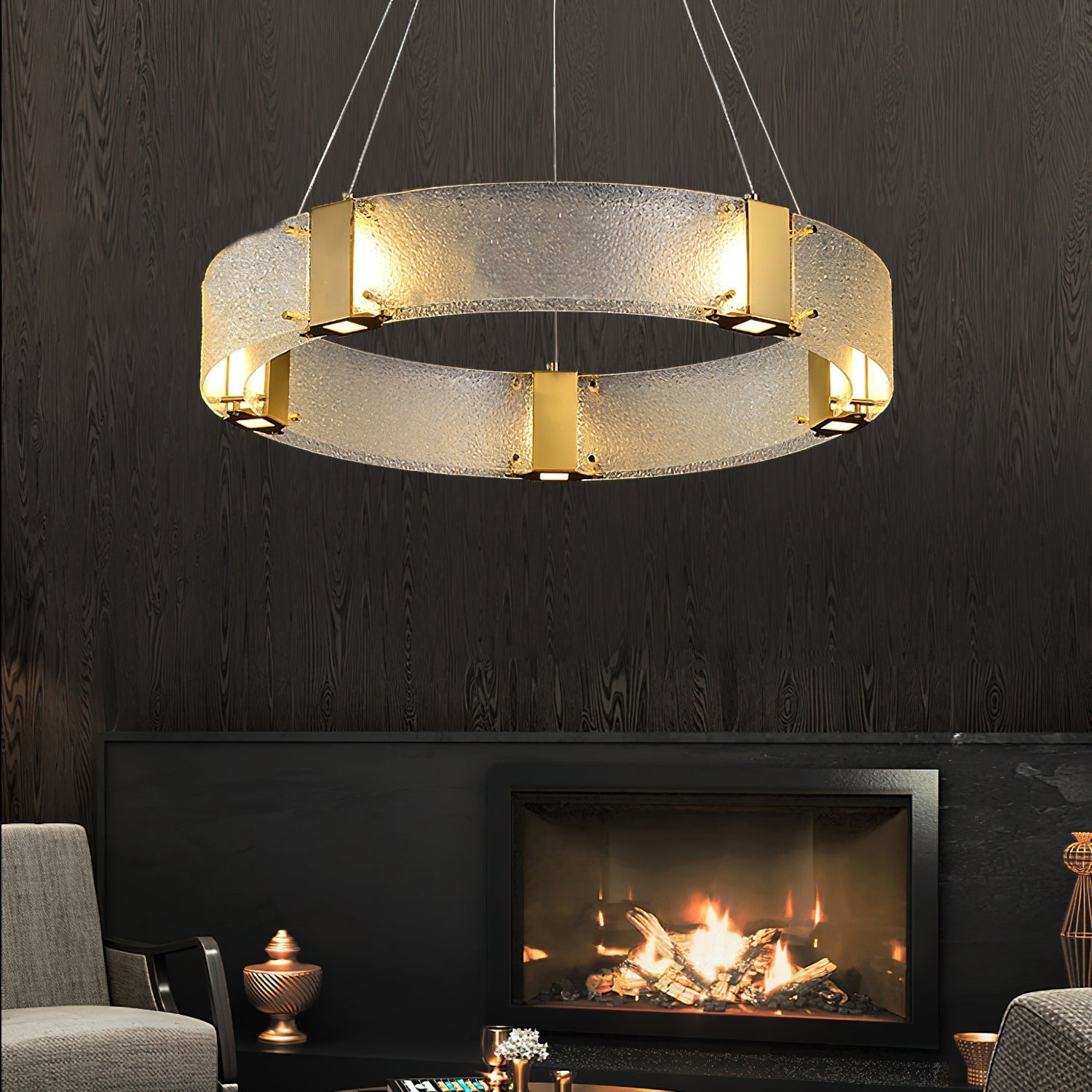 Enliven your indoor spaces with the Parallel Ring LED Chandelier by Radilum, a clever contemporary take on a more traditional fixture. It makes its materials the centerpiece, suspending two segmented ring structures made of hand-textured glass from a round metal canopy using several thin cables. Each segment is composed of two thin plates with space in between, restrained by evenly-spaced metal brackets and enlivened by integrated LED lamps that splash across their glittering interiors before diffusing outward in a warm corona of light.