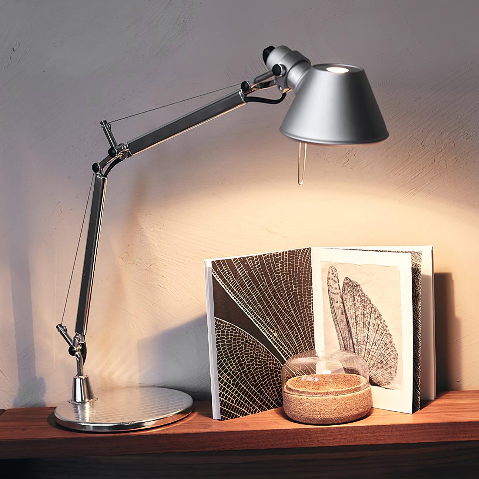 The Parete Table Lamp adds a chic and sophisticated touch to any workspace or office. Crafted from polished aluminum and featuring a two-arm design, this lamp exudes luxury with its metallic tones. Furthermore, the adjustable conical shade provides precise lighting perfect for illuminating any space with a stylish and distinct atmosphere.