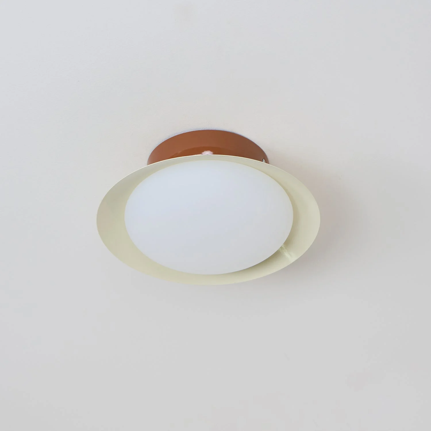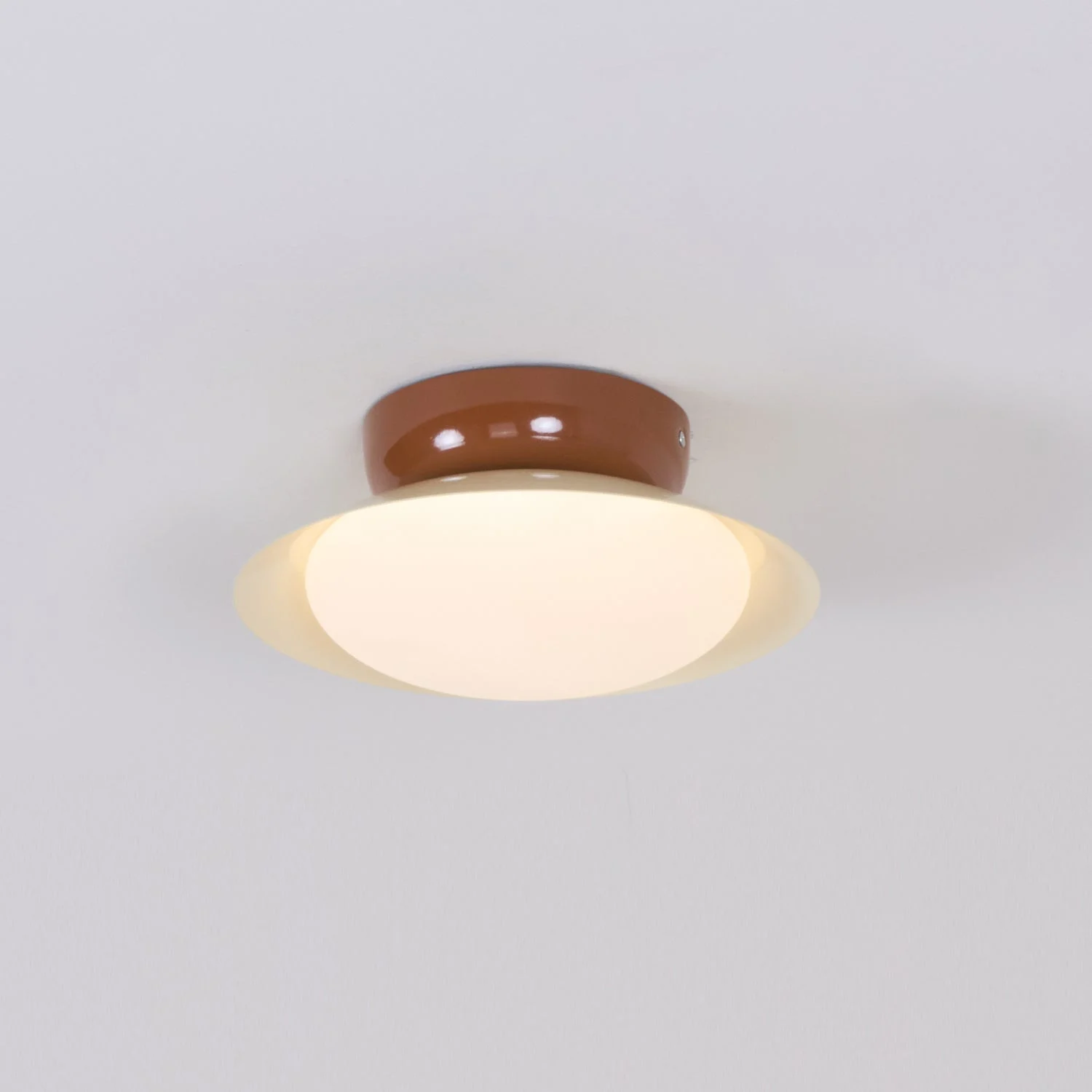 Elevate your space with this contemporary Paulo Ceiling Light, where retro charm meets modern minimalism. The combination of earthy green and warm brown hues brings a natural, mid-century vibe to any room, while the sleek, dome-shaped design exudes understated elegance. Crafted with attention to both style and functionality, Illuminate your home with timeless sophistication.