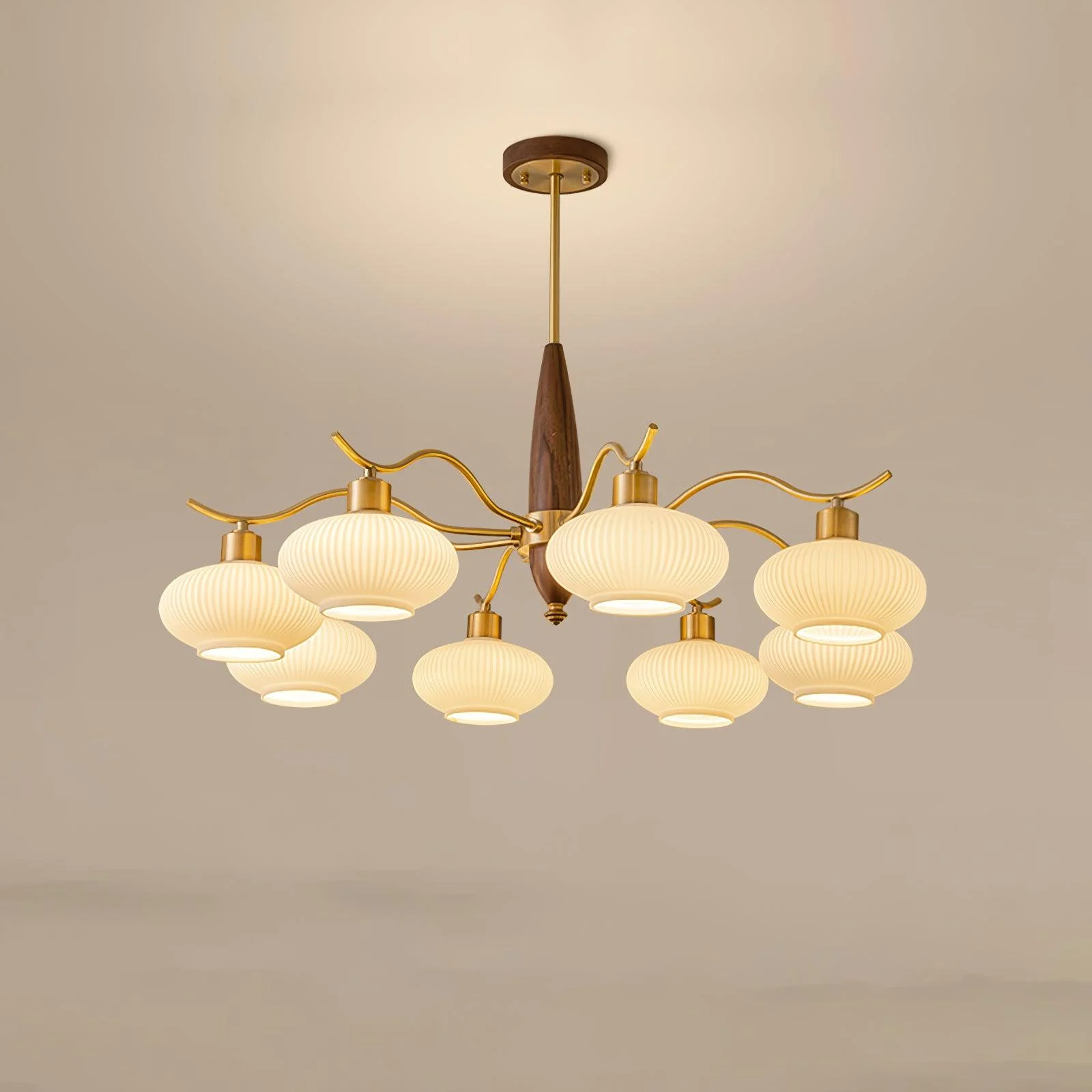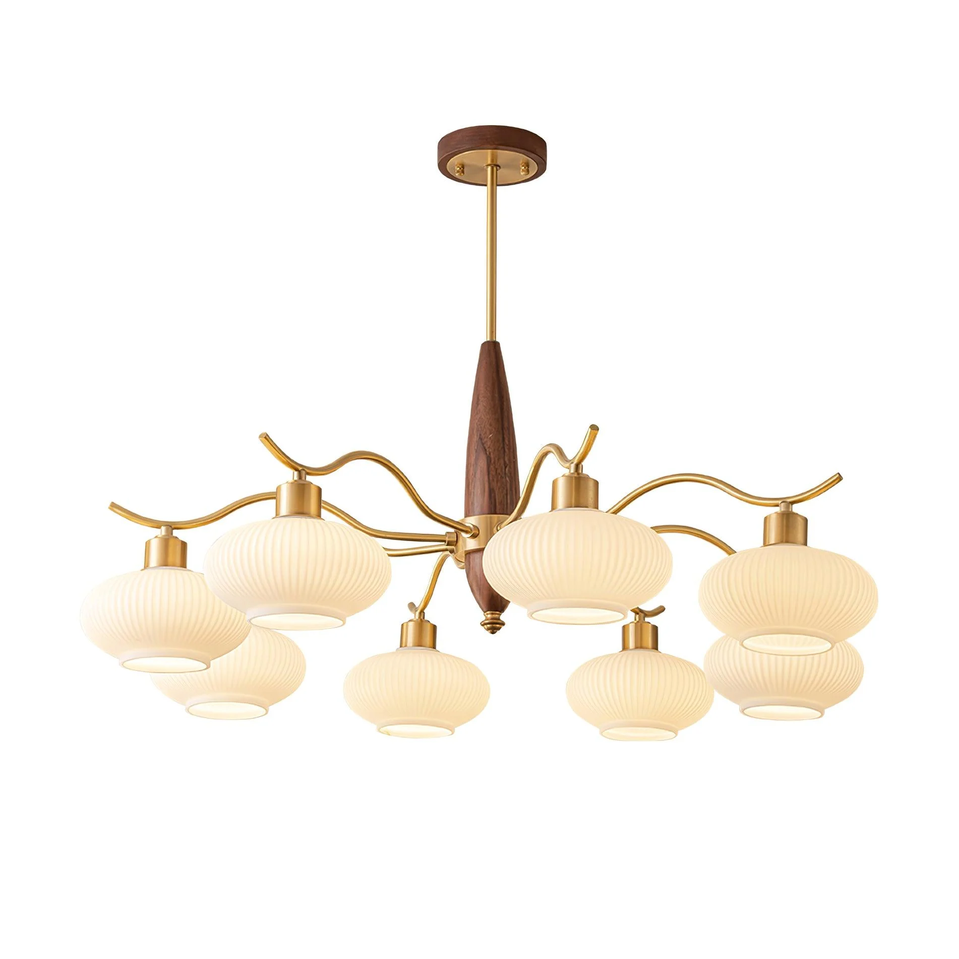 This stunning Penton chandelier is a beautiful combination of wood and brass. The classic and timeless design is perfect to add a luxurious touch to any room in your home.