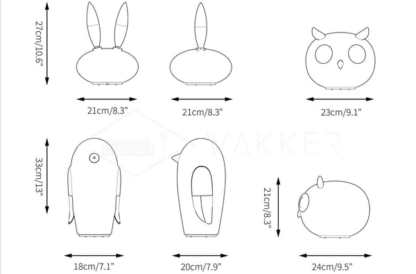 Uhuh, Purr & Noot Noot (owl, rabbit & penguin) are a series of animal table lamps by designer with their very own personalities and characteristics. Rounded, endearing and elegant, they find their place in any kind of interior climate and environment. Their frosted glass bodies, decorated with touches of gold, emit a sunny, heart-warming light glow. Choose your favorite characters amongst a penguin, a rabbit and an owl and enjoy a wonderland of fairy tale characters with heaps of charm!