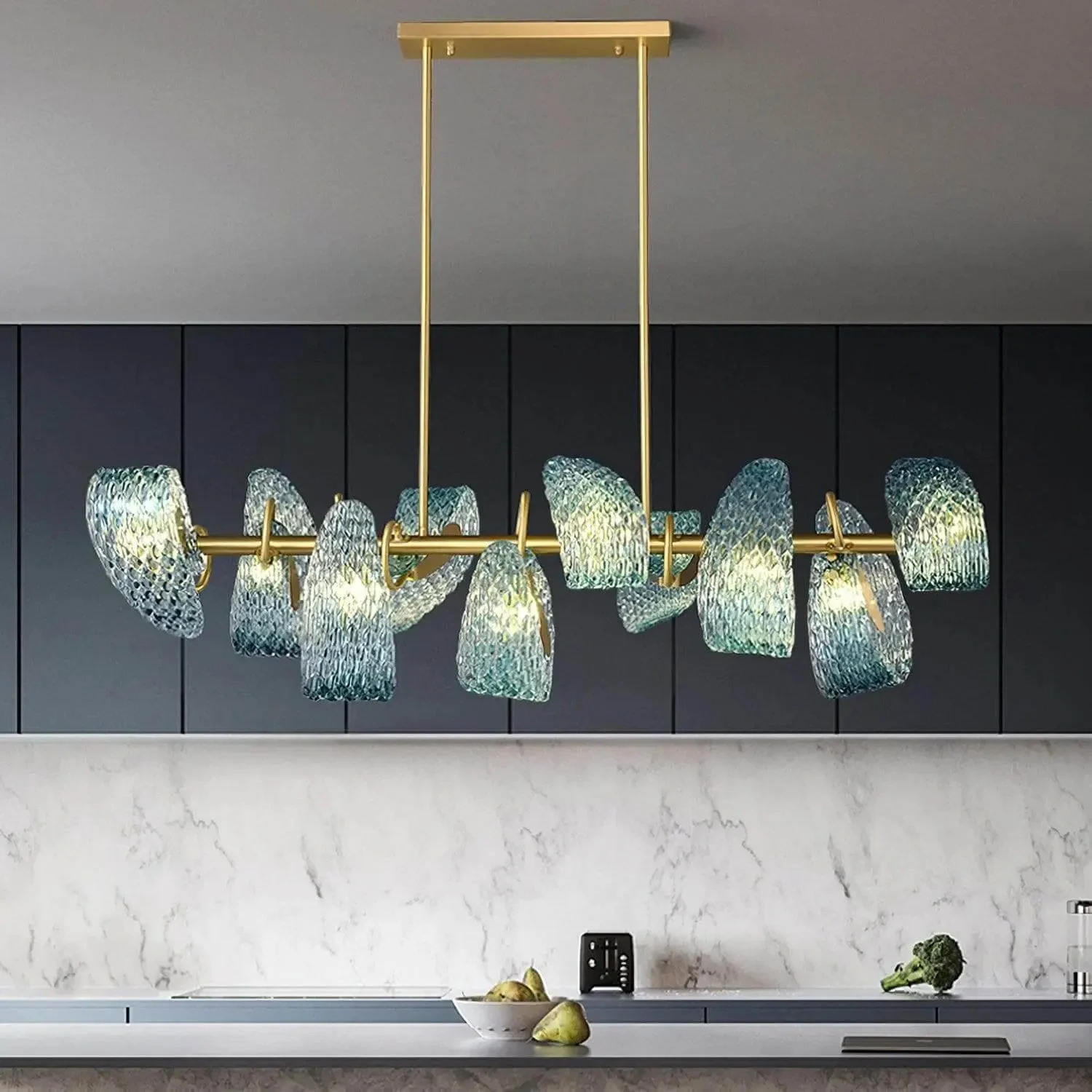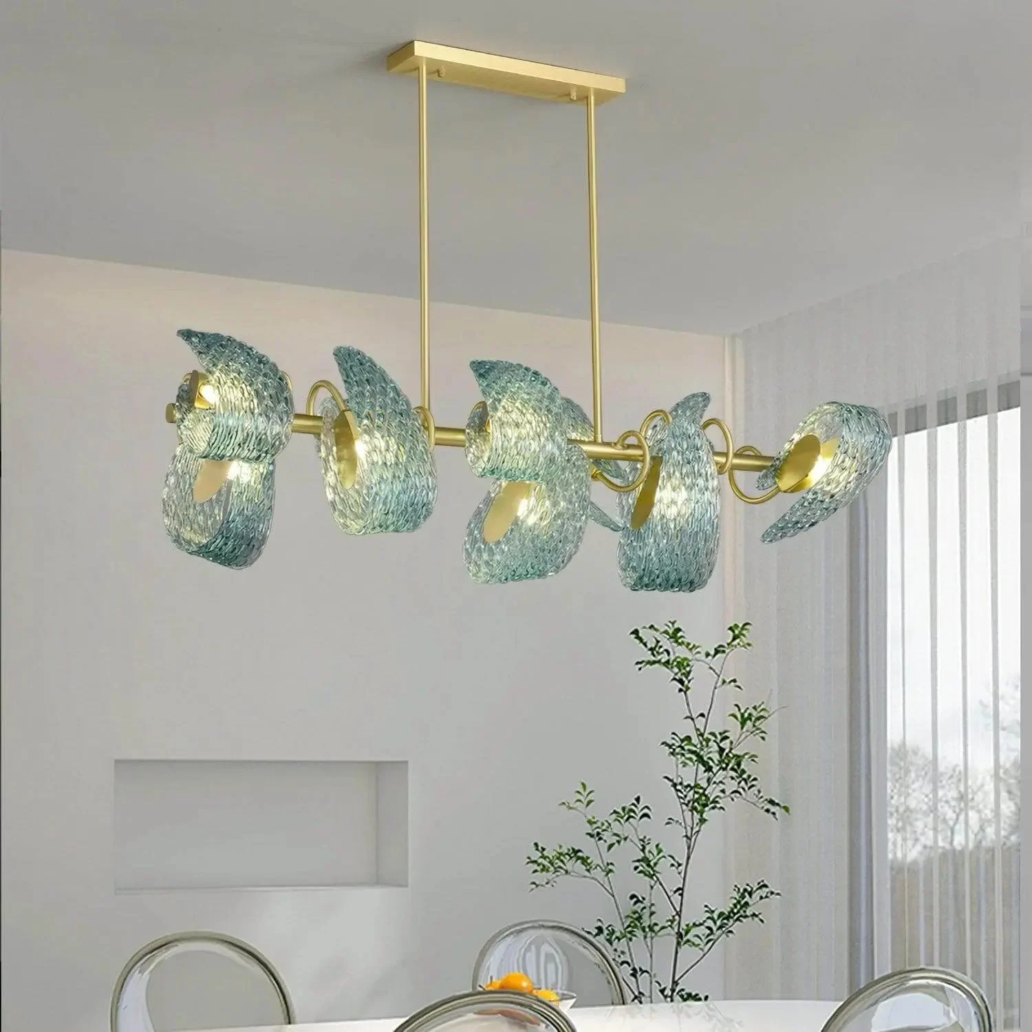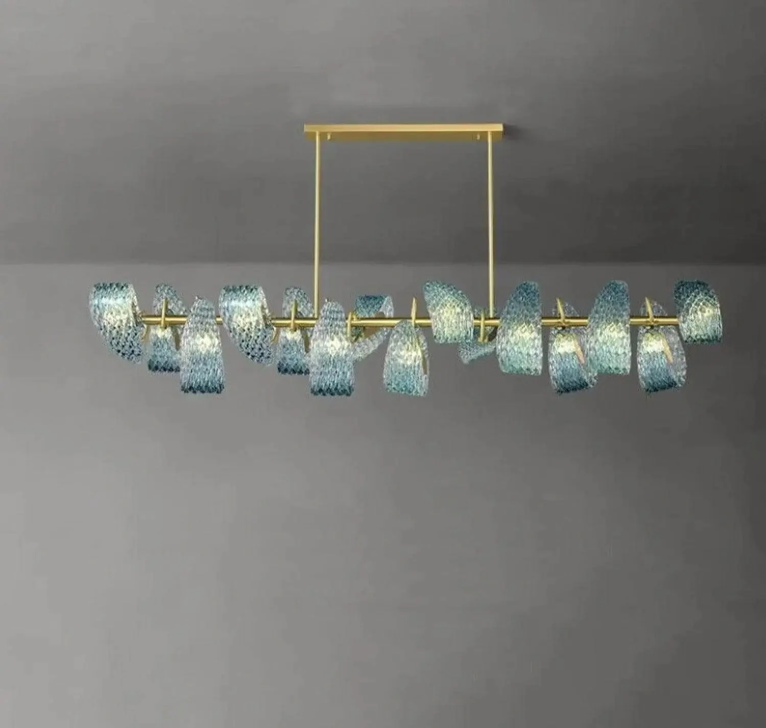 This Petal Blue Chandelier designers use all copper body and blue glass shade, petal art modeling blue and gold with each other, as if into the mysterious and noble territory, handmade craft, glass bumpy texture, mapping out the radiant light and shadow and unparalleled charm, create quality art life.Please note: Your payment does not include customs duties, local taxes or any other import fees.