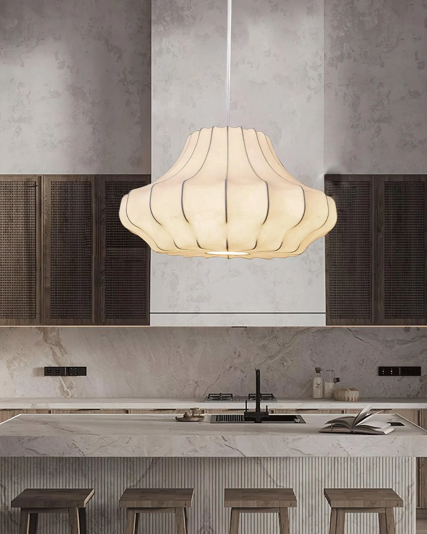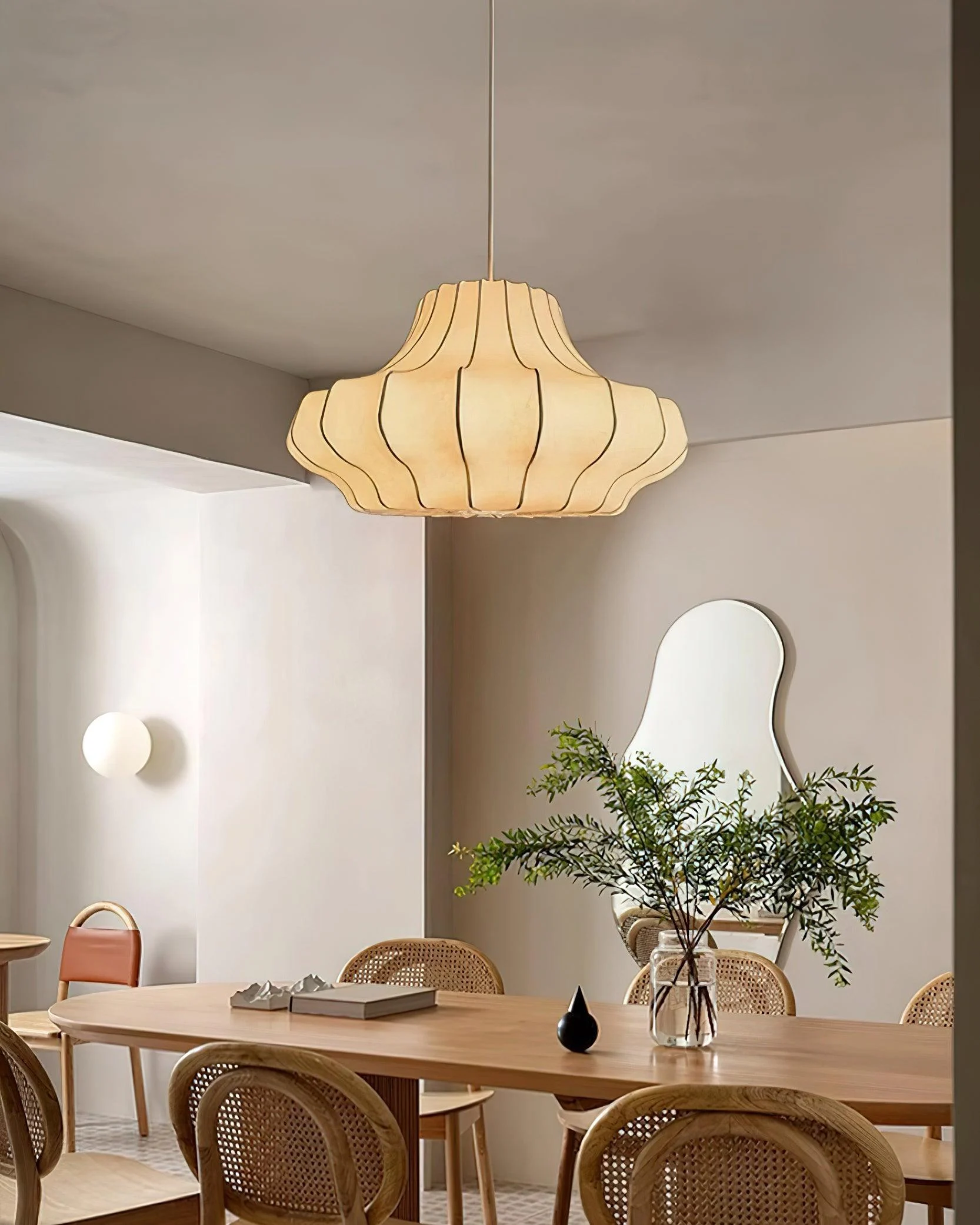 This of Phantom Pendant Lamp brings a gallery of light above your dining table with their fluid organic lines and a silhouette that speaks to the future. Their soft metallic sheen echoes the essence of modern design, infusing the space with a sense of movement and vitality. With their distinct wave shapes and sculptural aesthetic, these lamps serve as an artistic installation as much as a source of illumination.