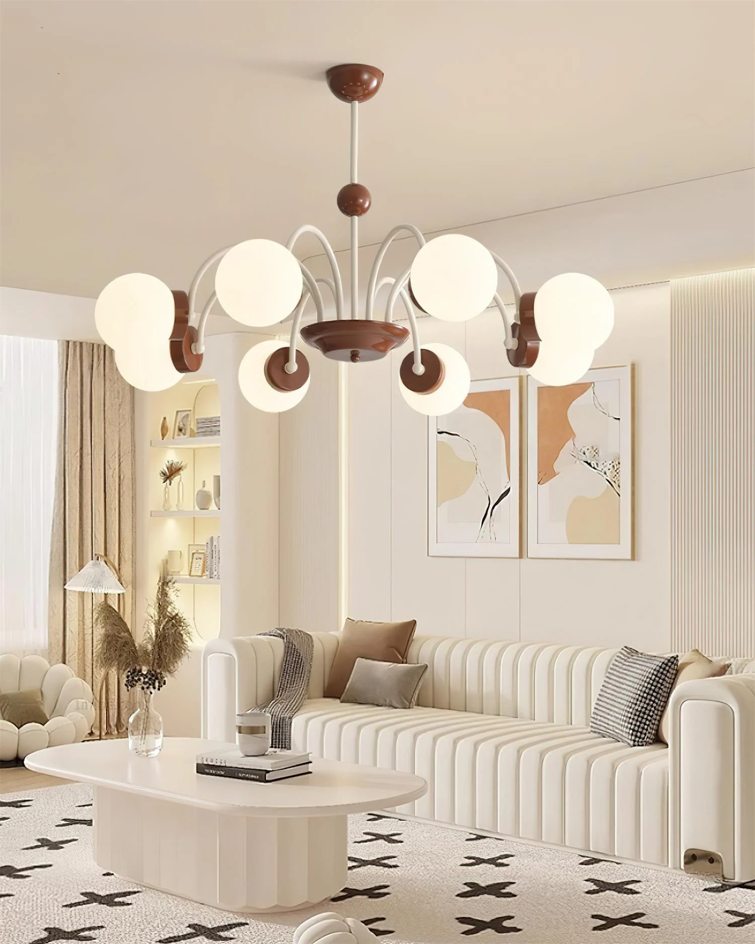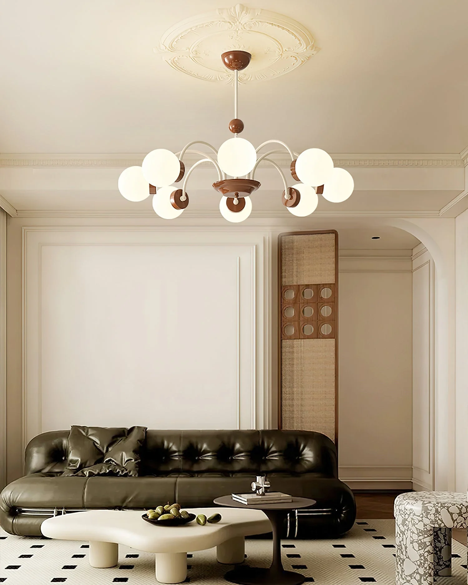 Illuminate your space with the Pilot Chandelier from Docos, where traditional charm meets modern elegance. This exquisite chandelier features a whimsical yet structured design with multiple orbs of light that seem to float in harmony. Each globe is encased in a sleek, white glass that diffuses light softly, ensuring your room is bathed in a warm, inviting glow.
