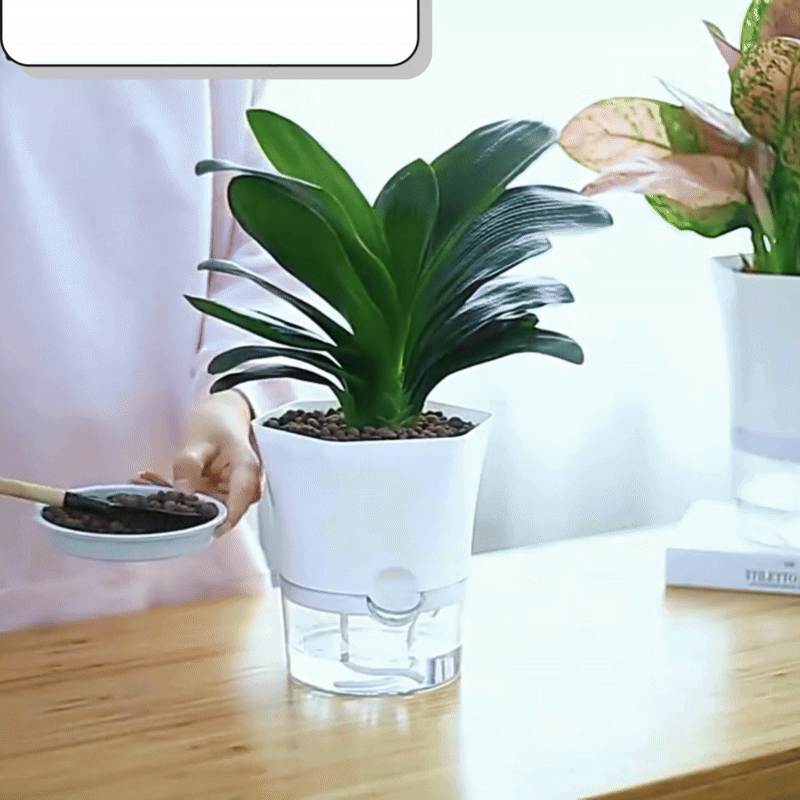 The plant pot with water reservoir is the ideal solution for anyone who wants to care for their houseplants effortlessly. With its innovative self-watering system, this pot ensures that your plants always receive the right amount of water – perfect for busy people or plant lovers who value simple and effective care.