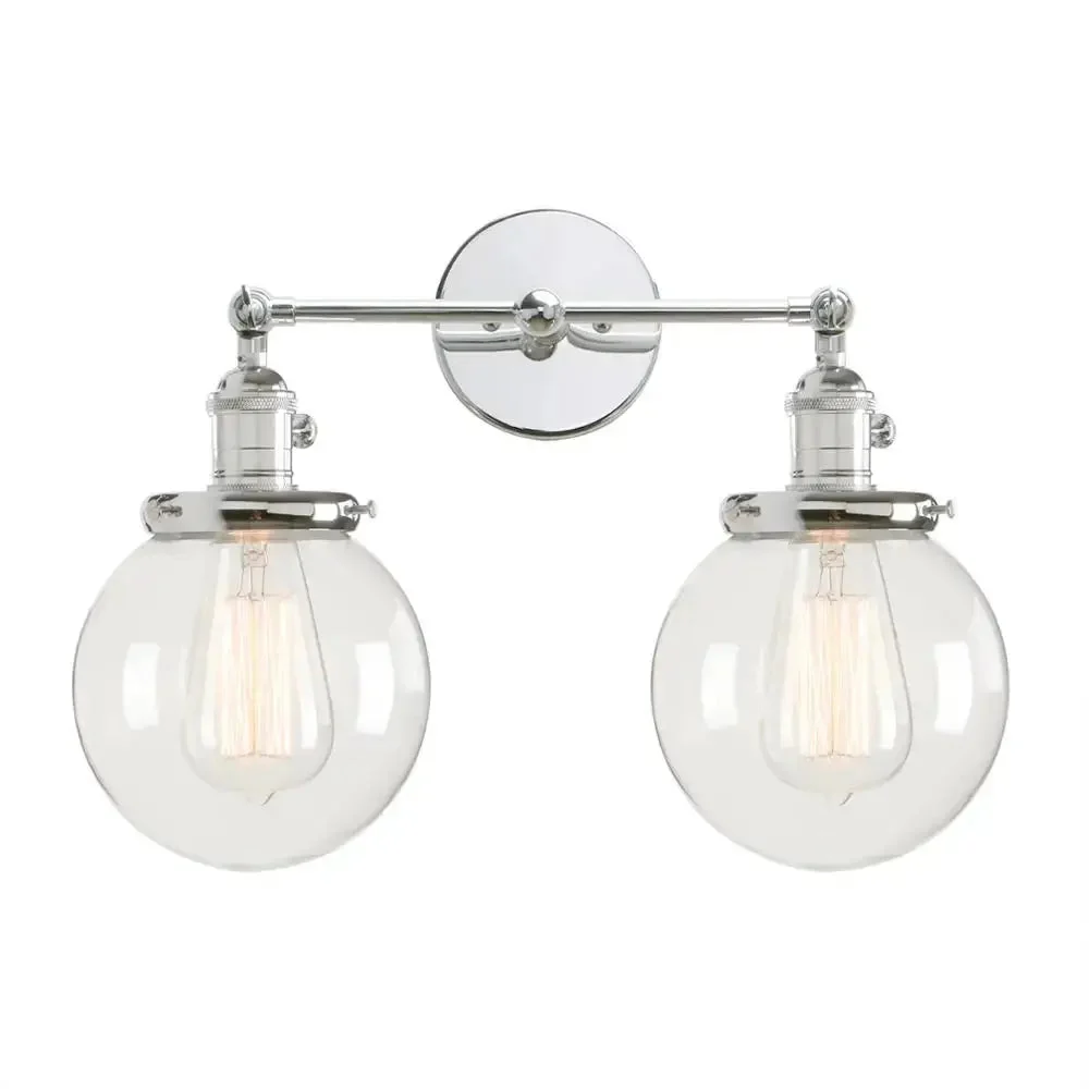 The Pluto 2 Lights Glass Globe Wall Sconce features a durable metal frame paired with two exquisite glass globes. This wall sconce embodies modern elegance, offering a sleek and minimalist aesthetic that complements any contemporary or transitional decor.
