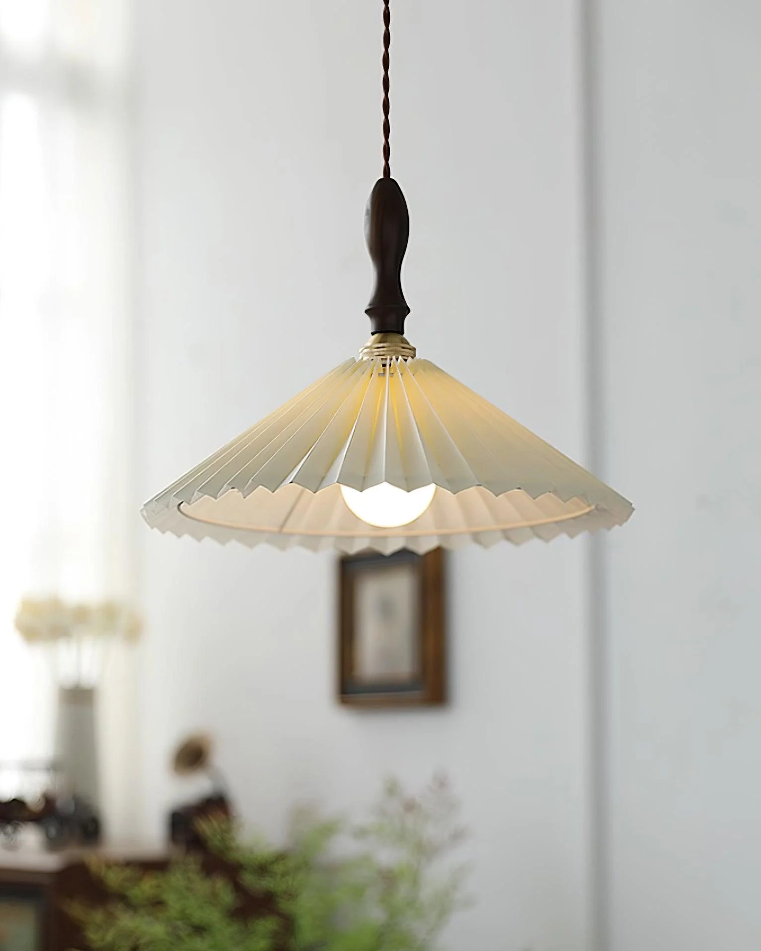 Adorned with a delicate pleated shade and crafted from walnut wood, the Prairie Pendant Lamp is the epitome of grace and sophistication. Its carefully honed production process ensures an exquisite and luxurious visual, perfect for lending an air of romantic charm to any bedroom, bedside, living room, study or other space.