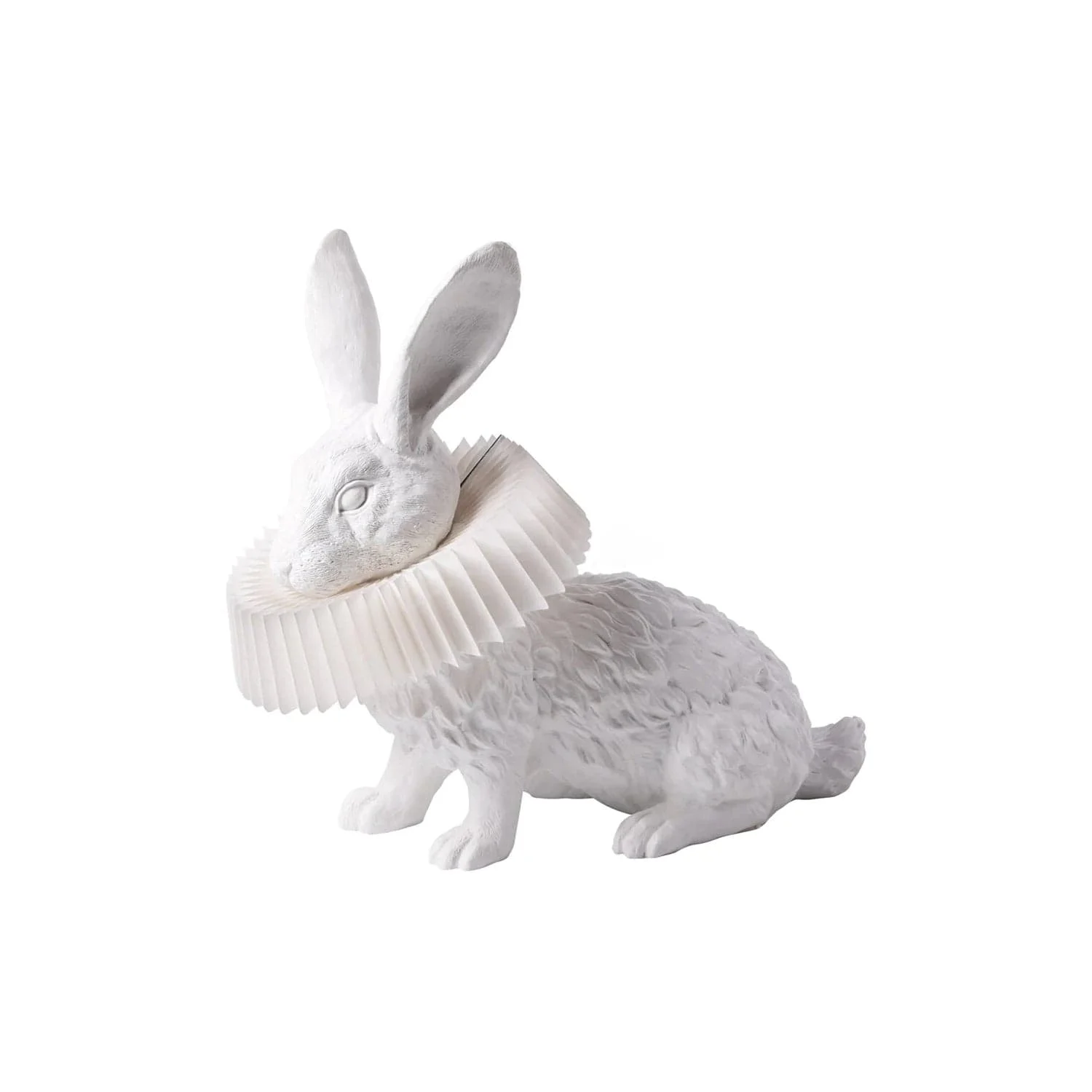 Rabbit X Table Lamp Inspired by middle ages costumes, surprisingly introduce ruffle collar details into their animals molding design. The streams of light through the paper, reflect the rabbit fur detail. This beautiful Rabbit X Table Lampp will surely creates a warm atmosphere for your space.