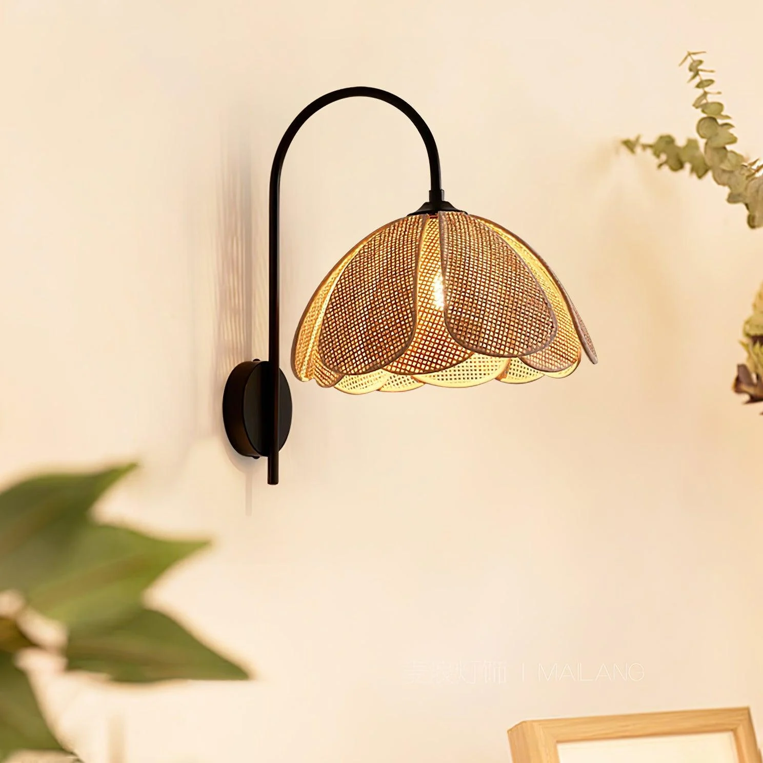 This Rattan Petal Wall Lamp is a beautiful reimagining of the 1970s flower lamp trend. Natural rattan and an organic shape create an intriguing contrast of materials, providing a unique decorative touch to any space.