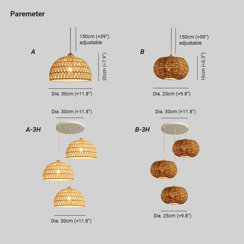 Rattan Woven Round Lampshade Vintage Pendant Light