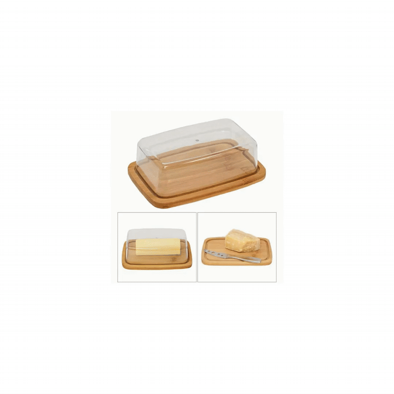 Farewell to messy packaging and enjoy fresh butter and cheese in high-quality storage. Get the rectangular cheese and butter dish with bamboo board and bring more organisation, freshness and style to your kitchen!