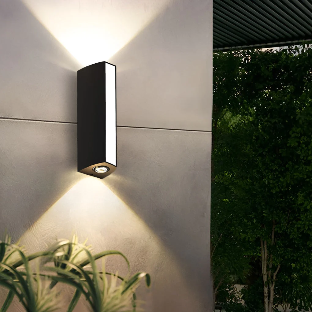 - Elegant and modern wall sconces make your outdoor walls very bright and beautiful. The up and down light lighting design makes it more decorative, and this wall lamp is not only a lighting tool, but also a unique exterior wall decoration.