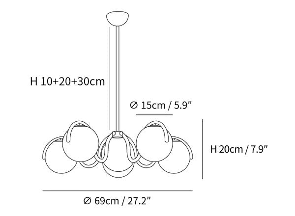 3.9″+7.9″+11.8″/10cm+20cm+30cm=23.6″/60cm Adjustable hanging height rod. Can be extended upon request.
