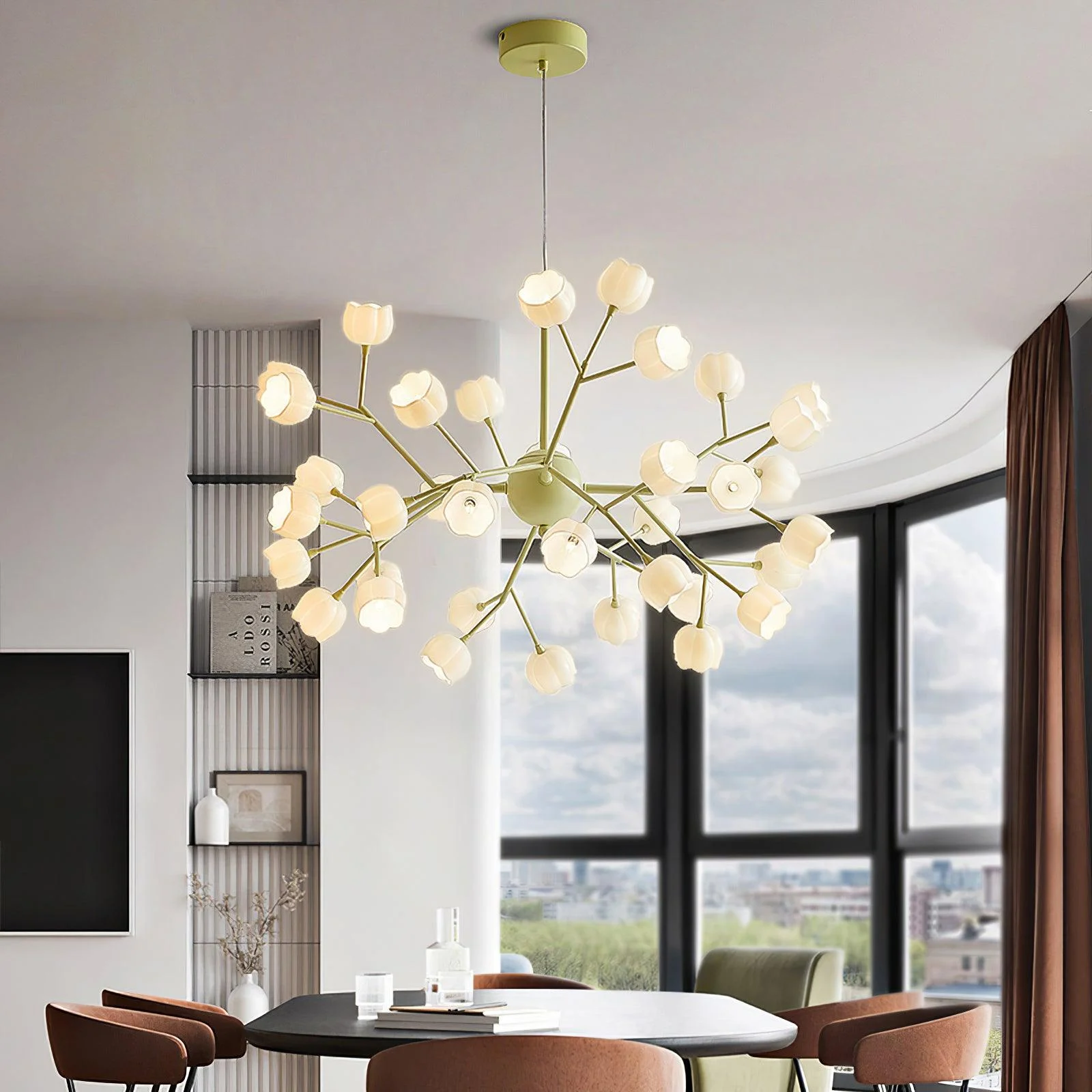 Crafted with precision using PE material, this masterpiece boasts a resplendent green body that elegantly mimics the delicate splendor of a blossoming field. The Rei Flower Chandelier transcends the ordinary, evoking feelings of wonder and delight. Its remarkable ability to infuse nature’s grace into interior decor transforms any room into a sanctuary of elegance and imagination.