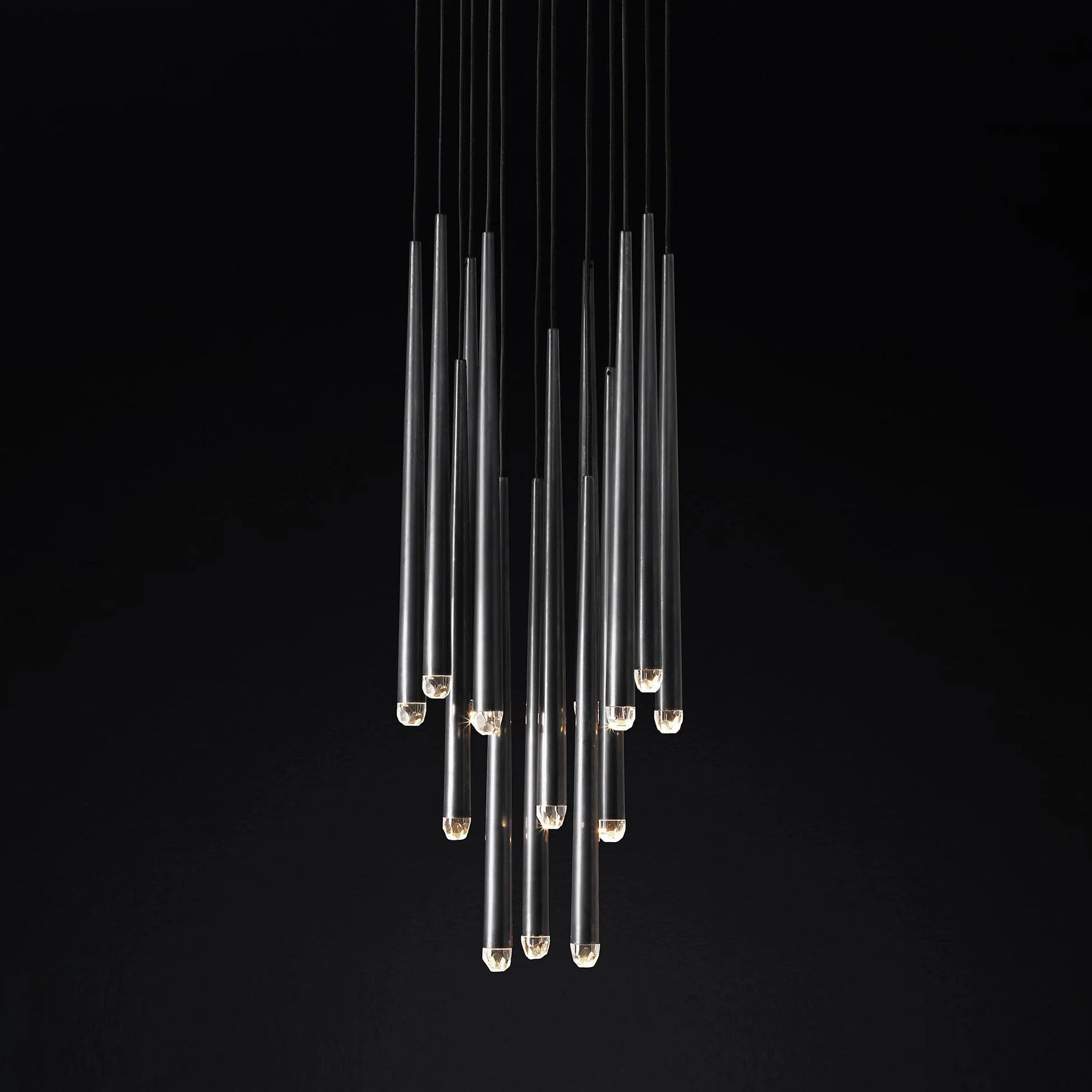 Inspired by the minimalist lighting designs of 1960s France, this exquisite fixture showcases a cluster of solid brass forms delicately suspended from slender black cords. The Renaie Round Chandelier is more than just a lighting fixture; it’s a work of art that transforms any room into a timeless masterpiece. Its marriage of classic French aesthetics with contemporary design principles results in a truly unique piece that commands attention and admiration.