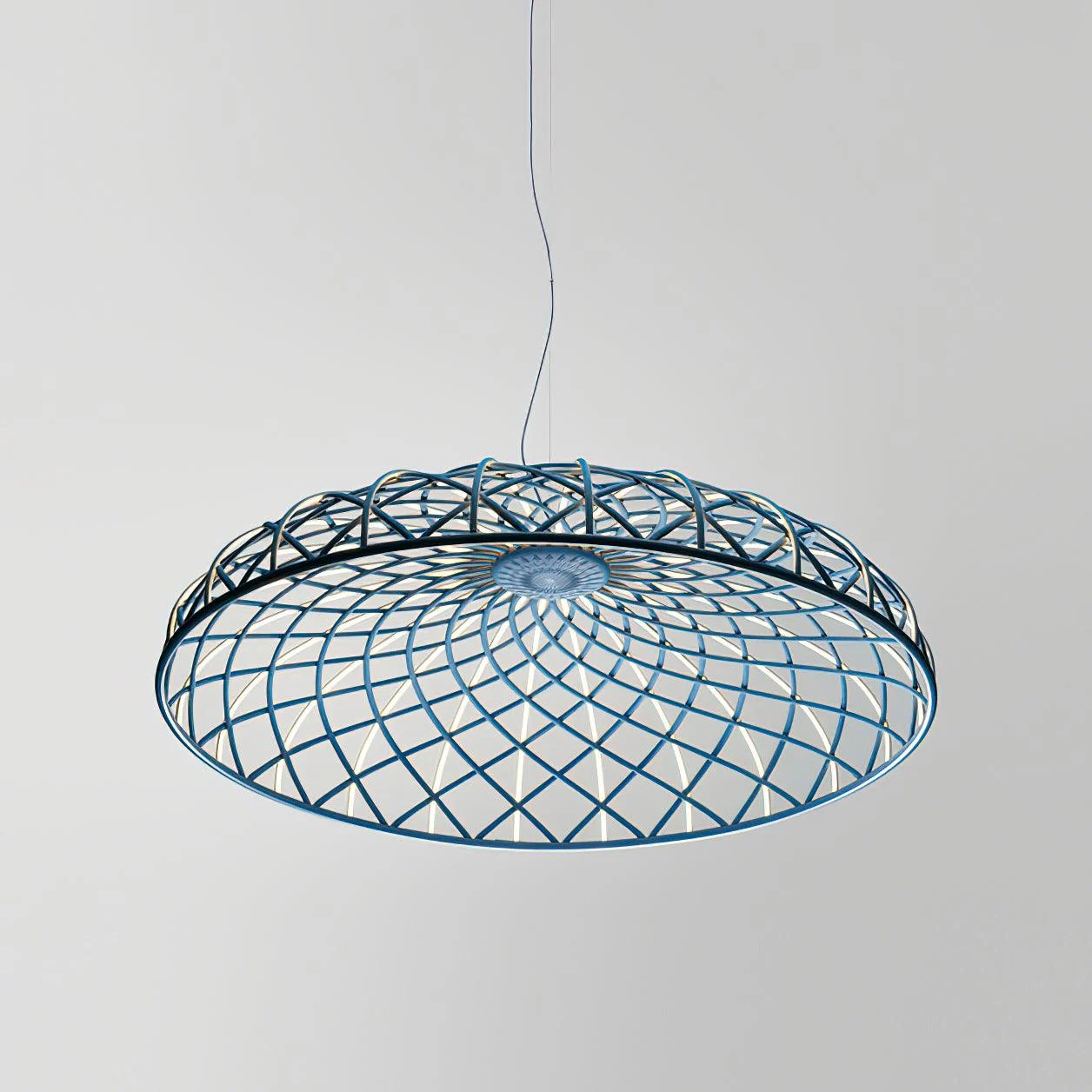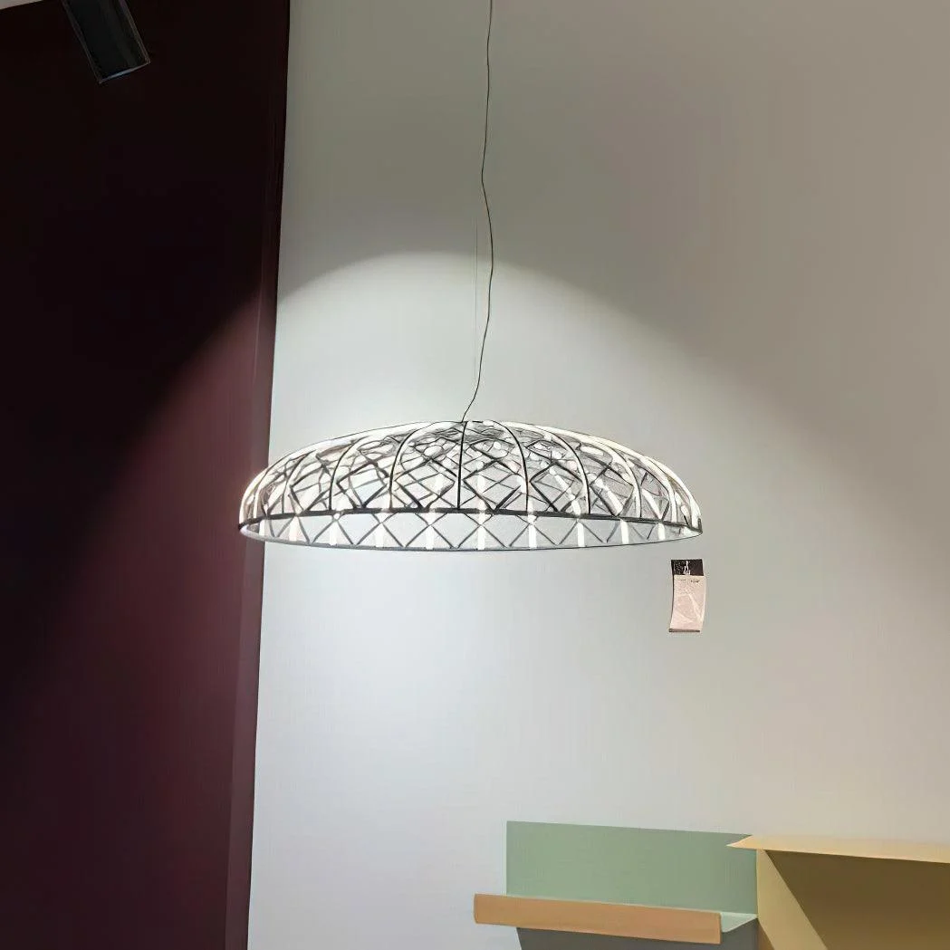 The Reticulated Pendant Lamp stands as a testament to contemporary design, seamlessly blending functionality with aesthetic allure. Its unique braided silhouette casts an enchanting array of light and shadow, captivating the observer with its dynamic interplay. The lamp’s essence lies within its intricate network, meticulously wrapped in a vibrant, tubular mesh that speaks to the artistry of its construction.