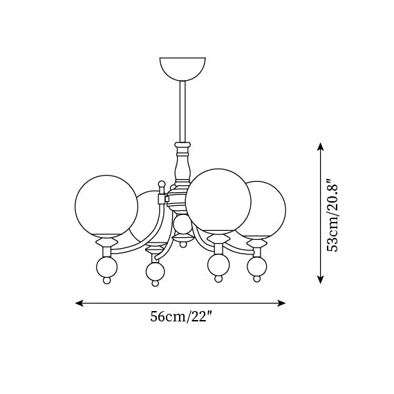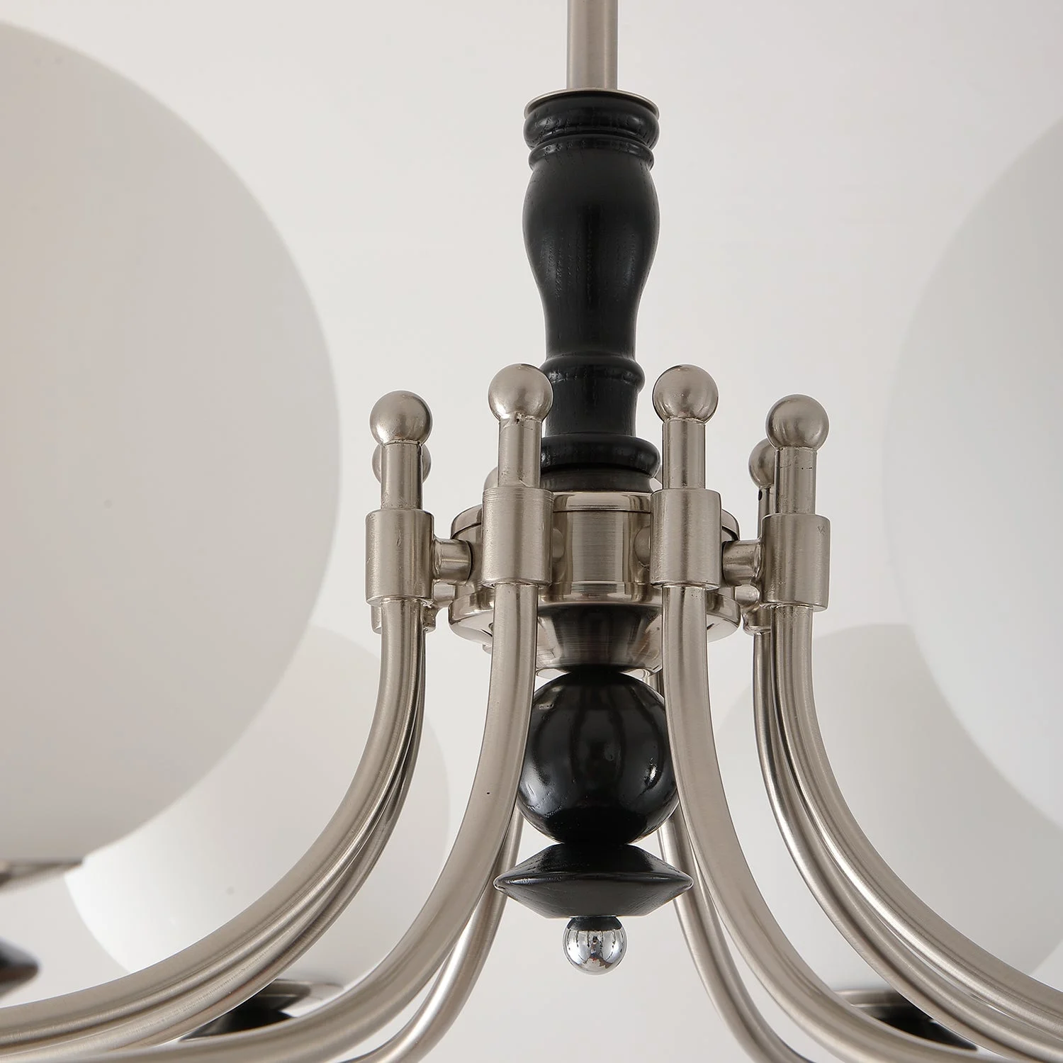 Delicately designed to blend classic elegance with modern reliability, the Retro Ellan Chandelier is a masterpiece of lighting. This chandelier showcases an artistic arrangement of glass globes, each perched gracefully atop a polished metallic arm that reveals a sleek and stylish silhouette. The carefully positioned globes emit a soft, diffused light, ensuring a warm ambiance perfect for both intimate gatherings and serene evenings alone.
