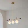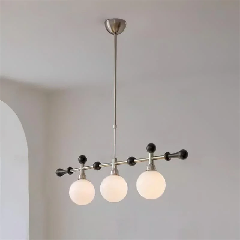 This Retro Satilla Chandelier captures the essence of sophistication with its sleek golden frame and delicately balanced white glass globes. Each arm extends gracefully, holding a luminary that casts a soft, inviting glow, this chandelier is a statement piece that brings timeless elegance and a touch of luxury to your dining area or living room.