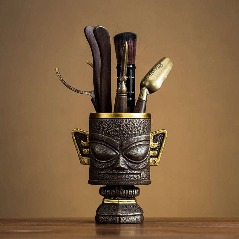 Retro-Style Abstract Character Pen Holder: Decorative And Practical Desk Organizer