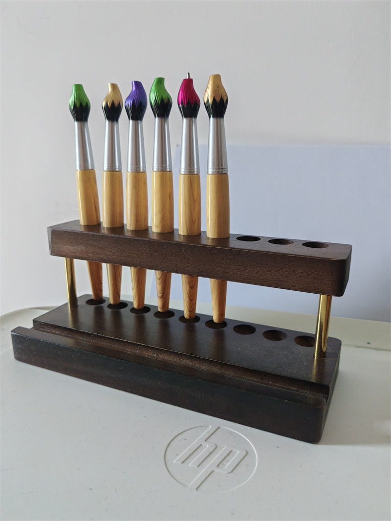 Retro Wooden Office Pen Holder With Mobile Phone Stand, Desktop Organization