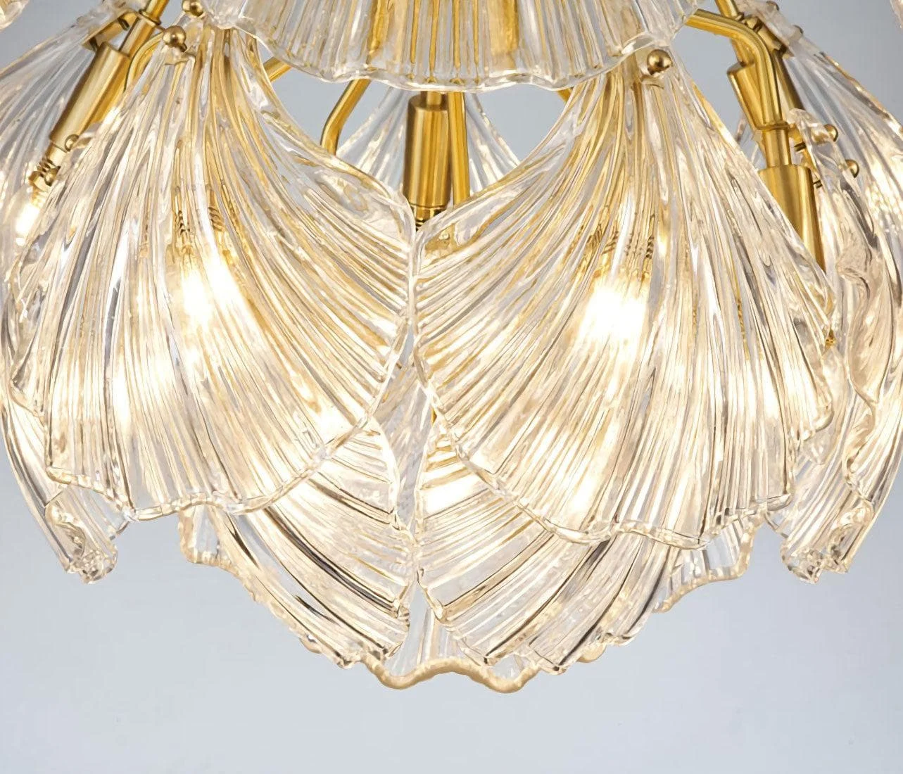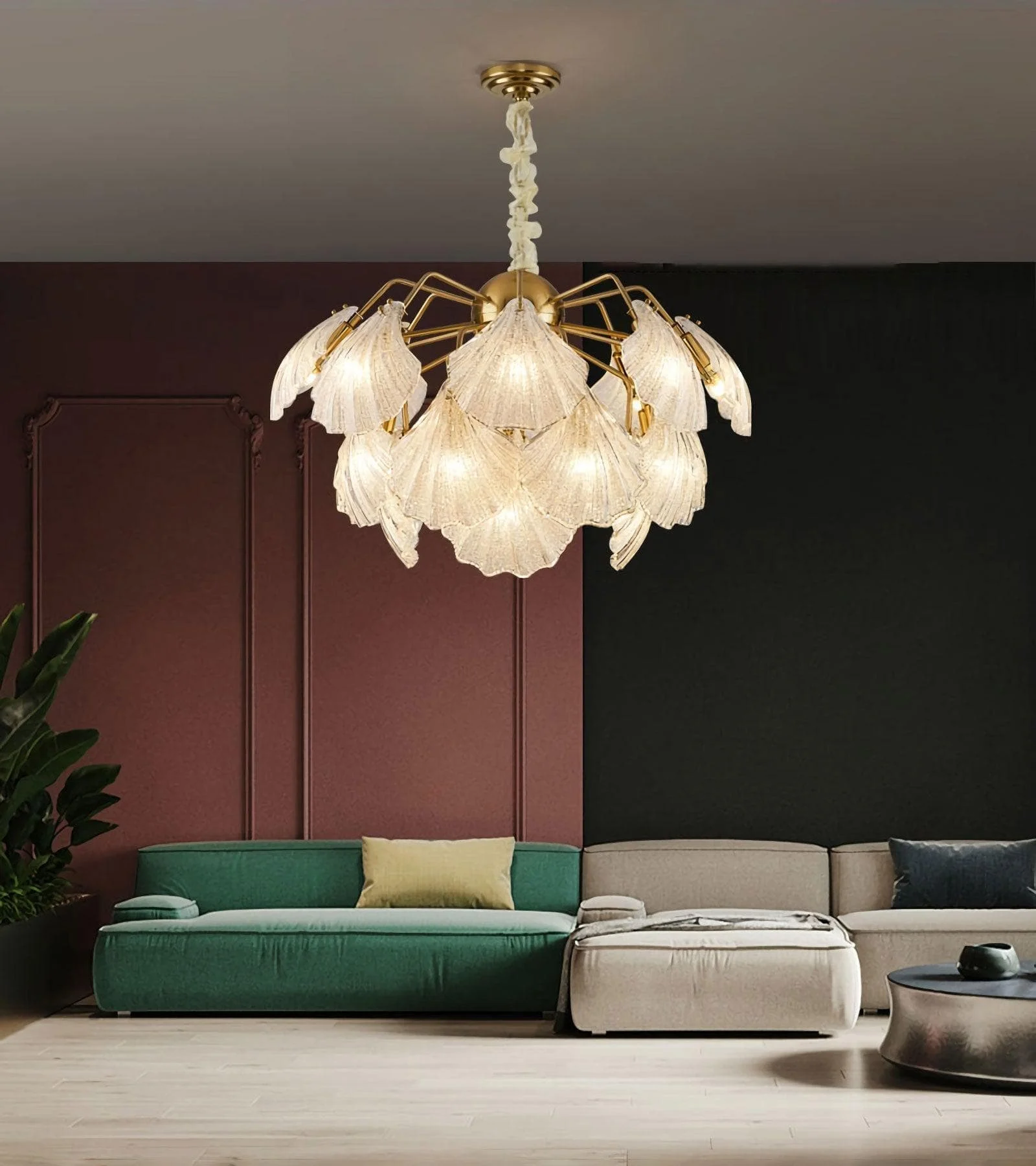 Shell-style glass chandelier adds a grandeur warm glow to your home interior. Our beautiful chandelier is a colorful addition to your room, It’s a great way to add a pop of color to a room, and it will illuminate your space and liven up the decor of your room. Hang this chandelier above the dining room table, living room, kitchen, and hall room for beautiful light. It gives you endless options for decor that will add a beautiful look to any space.