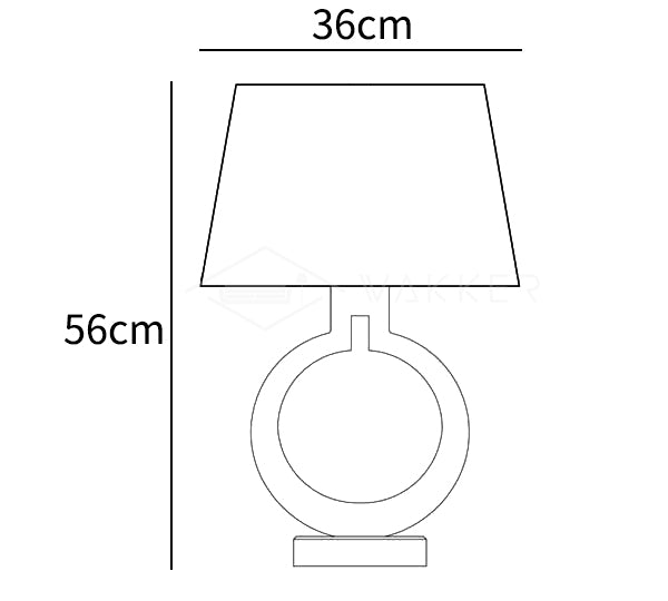 The Ring Form Table Lamp features a ring-shaped silhouette with a natural paper shade to complete the look. Once illuminated, a soft warm glow is evenly distributed through the opaque rectangular shaped shade. The table lamp is ideal for use in a living room as a side table, on a sofa table, or even in a bedroom or office setting.