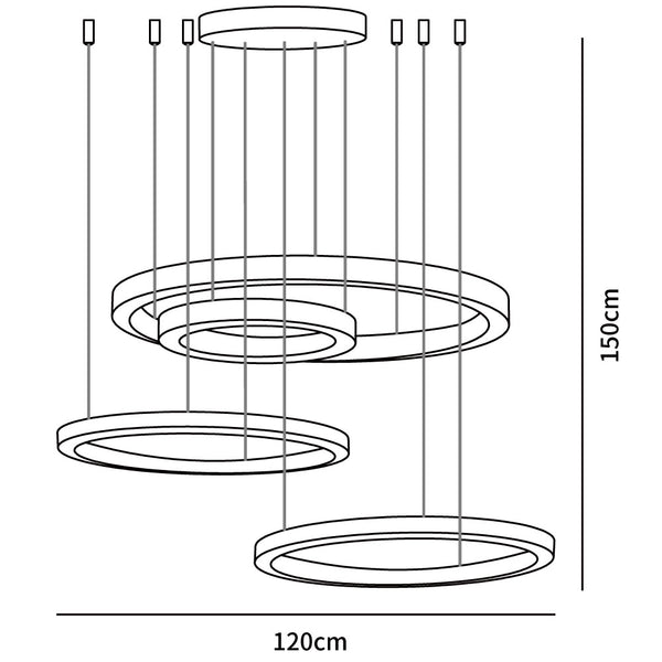 The Mahlu floating circular seamless pendant creates a warm inviting glow by emitting light from both above and below the rings.