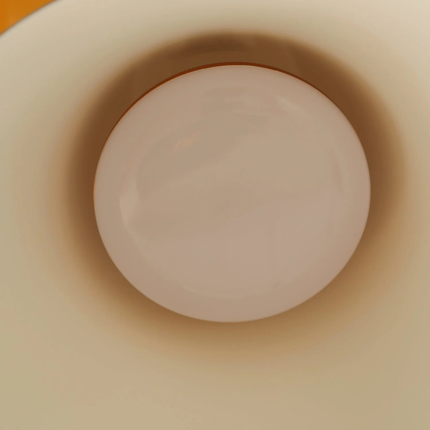 The Riva Pendant Lamp combines modern design with playful elements, offering a vibrant touch to any space. Featuring a unique conical shade in soft blue, the lamp is highlighted by an eye-catching yellow ring that contrasts beautifully with the warm brown orb above. The striped version adds an additional layer of fun, with alternating yellow and blue stripes creating a dynamic visual appeal.