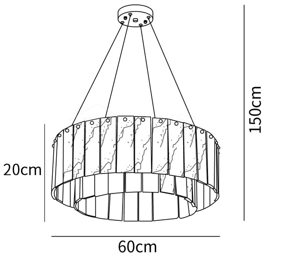 59″ Adjustable hanging height cable. Can be extended upon request.