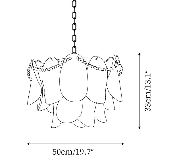 Size: Dia 50cm x H 33cm / ∅ 19.7″ x H 13.1″ (uses six E14 bulbs)