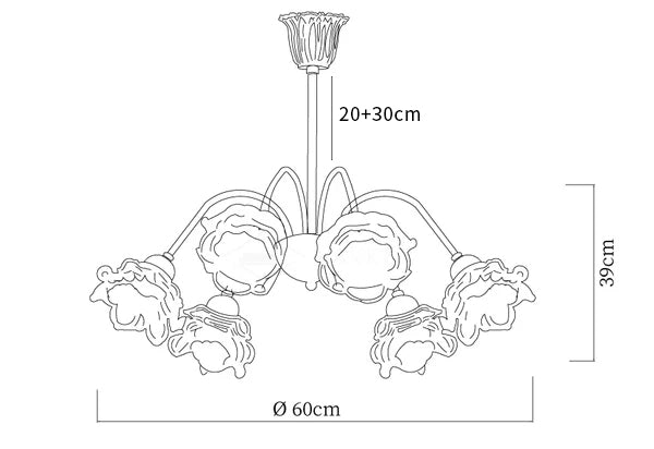 6 heads Size: Dia 60cm x H 39cm / ∅ 23.6″ x H 15.4″