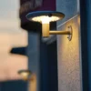 - Brighten up your outdoor spaces with this round solar outdoor wall lights. Built from sturdy aluminum with a sleek PC lampshade, this light combines style and durability. The dual motion sensors detect movement up to about 20 feet away, providing added security and peace of mind for your home.