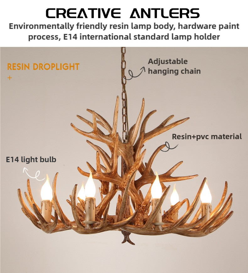 Rustic style antler led chandelier