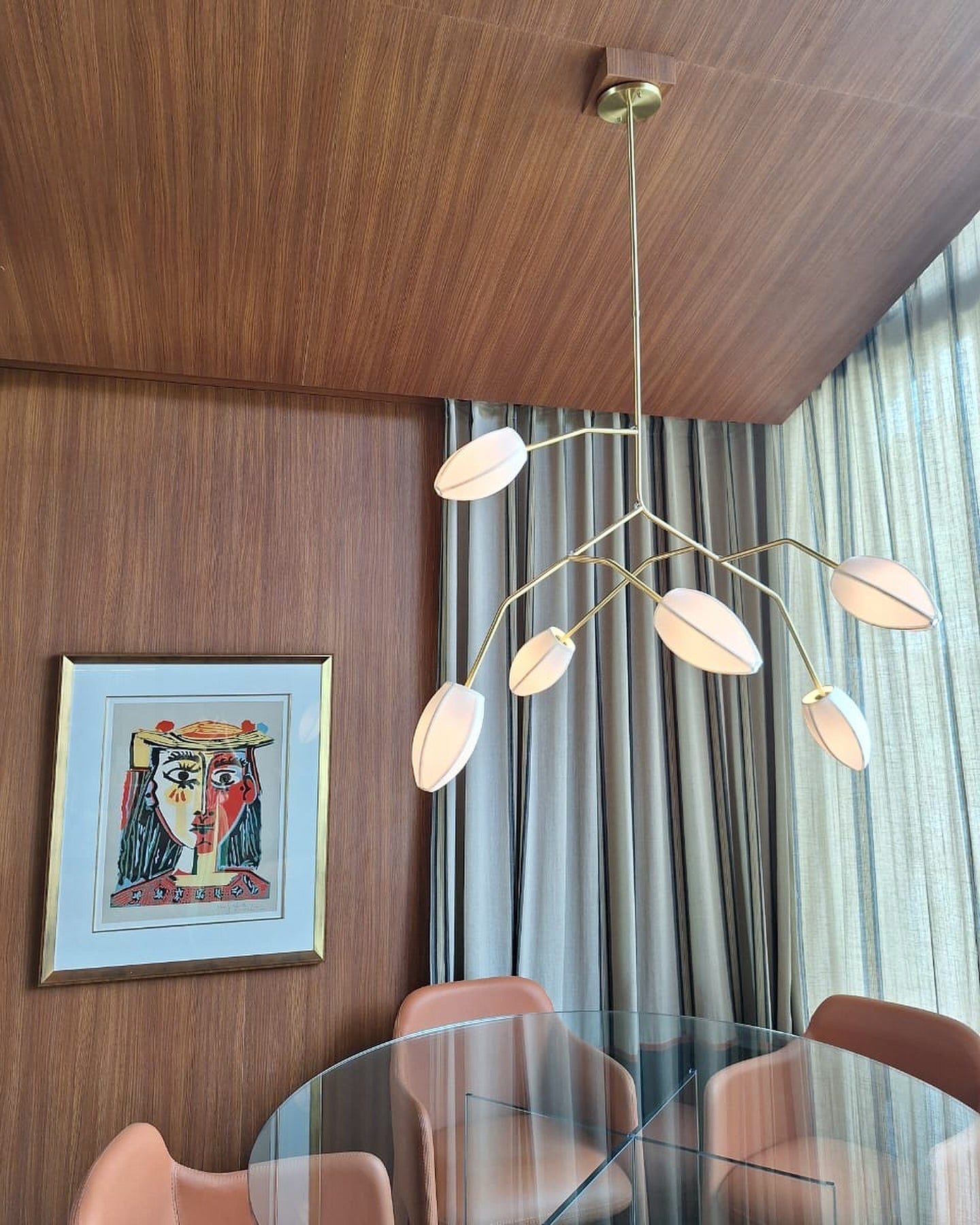 The Sacura lighting line captures the ephemeral beauty of cherry blossoms in Japan, with a design that combines delicacy and structure. Composed the line uses brass and steel for irregular stems, which evoke the naturalness of trees laden with white flowers, while the cotton shades represent the softness of these petals. The lighting is diffused, providing a soft and welcoming light, ideal for creating calm and contemplative atmospheres. The organic and light aesthetic of the Sacura lighting is an invitation to integrate the poetry of design with functionality, making it a refined choice for both residential and commercial projects.