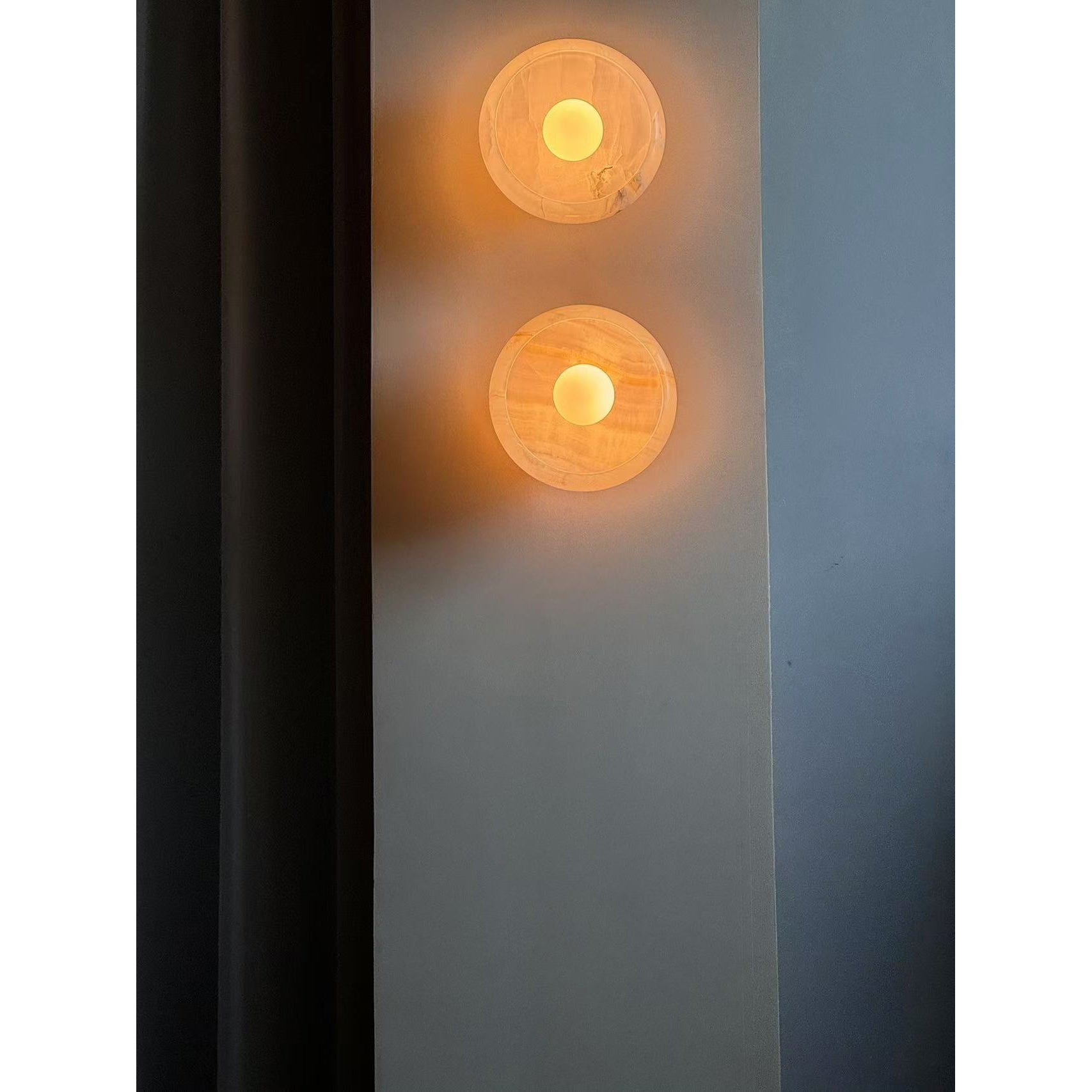 Revitalize your space with the Savion Marble Wall Lamp. The perfect balance of contemporary design and natural beauty, it features a circular marble backdrop that creates a calming ambiance. The diffused light accentuates the unique patterns of the marble, making it a stunning addition to any room.