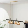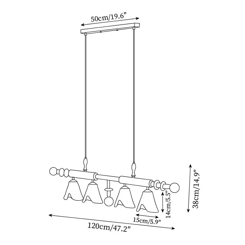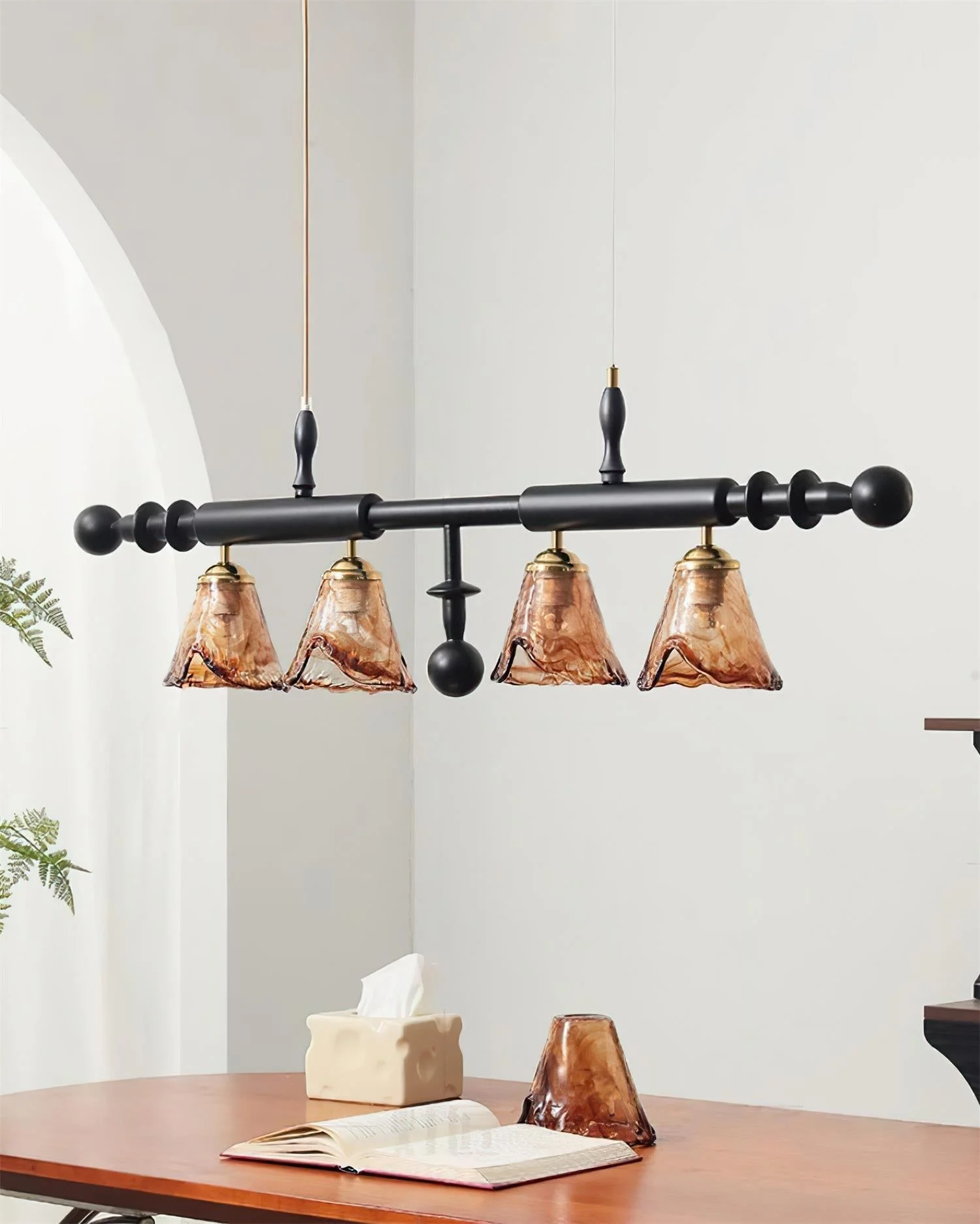 The Savoy Chandelier is a statement piece that combines vintage charm with contemporary style. Featuring four elegantly shaped glass shades with a unique textured finish, the chandelier offers a soft, ambient glow. The sleek black metal frame and gold accents provide a striking contrast, elevating the piece with a sophisticated touch. Its versatile and timeless style complements a variety of interior aesthetics.