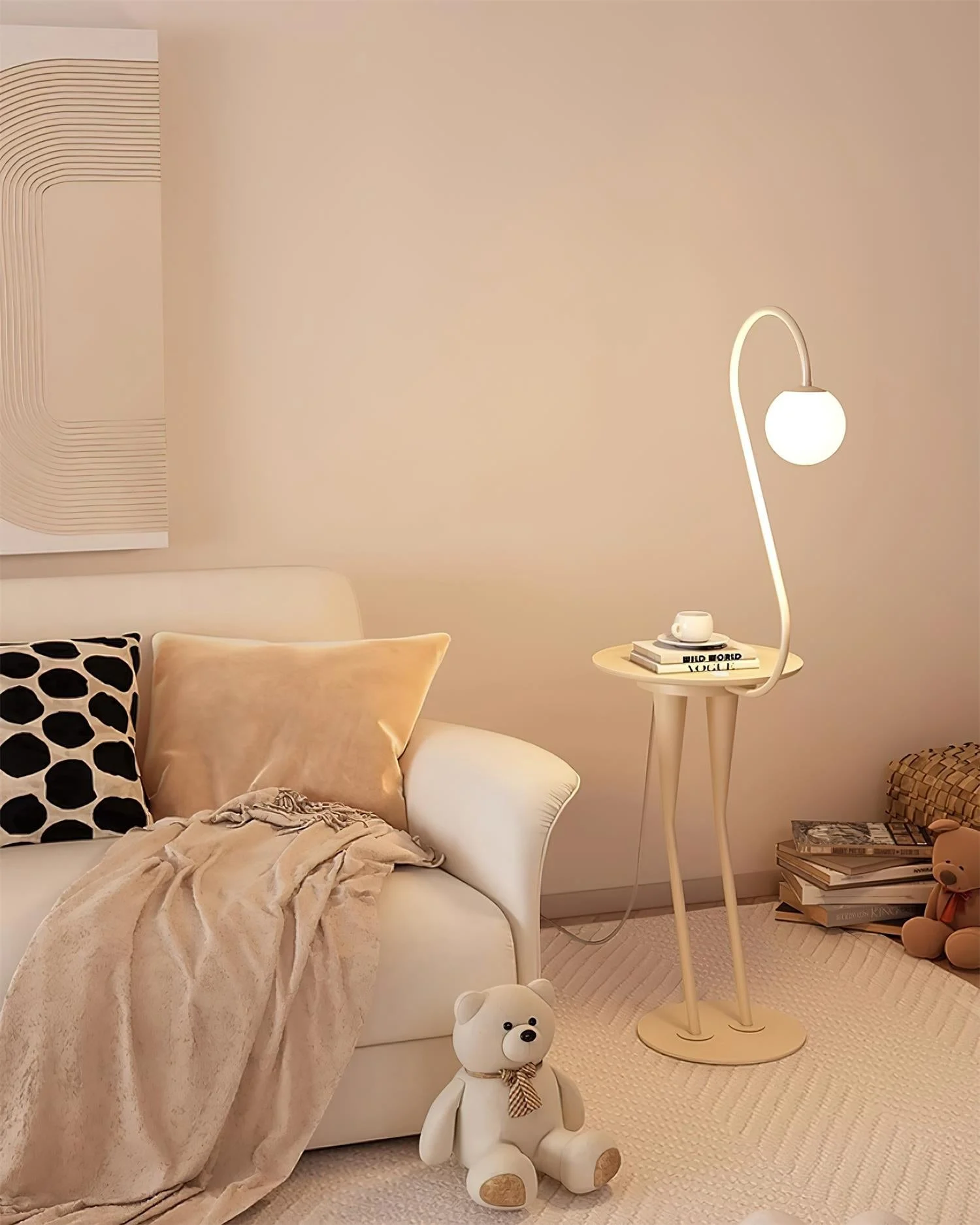 Introducing the “Sento Floor Lamp” from Docos, a marvel of functional design and modern aesthetics. This lamp combines the sleekness of its curved metallic stand with the practicality of a wireless charging tray, perfect for keeping your devices powered up. Available in two color schemes—gentle beige and classic black—each variant is designed to seamlessly blend into your living space while providing essential lighting. The soft glow from the opal Acrylic sphere adds a touch of warmth to any room, creating an inviting atmosphere.