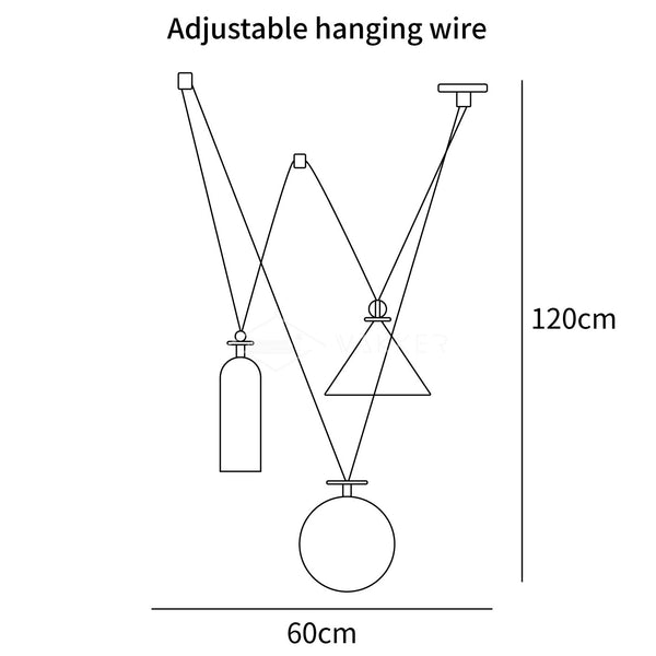 59″ Adjustable hanging height cable, which can be lengthened as required.